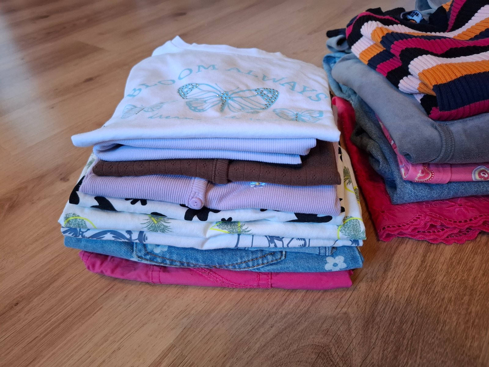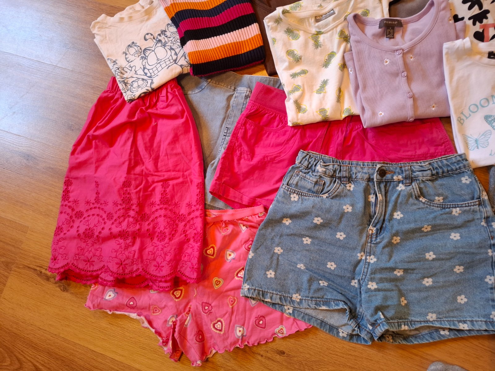 Balík obsahuje 7 ks tričko krátky rukáv, 2x rifle, 2x riflové kraťasy, 1x pyžamové kraťasy, 1x látkové kraťasy, 1x sukňu, mikinu, 1x tričko s dlhým rukávom.
