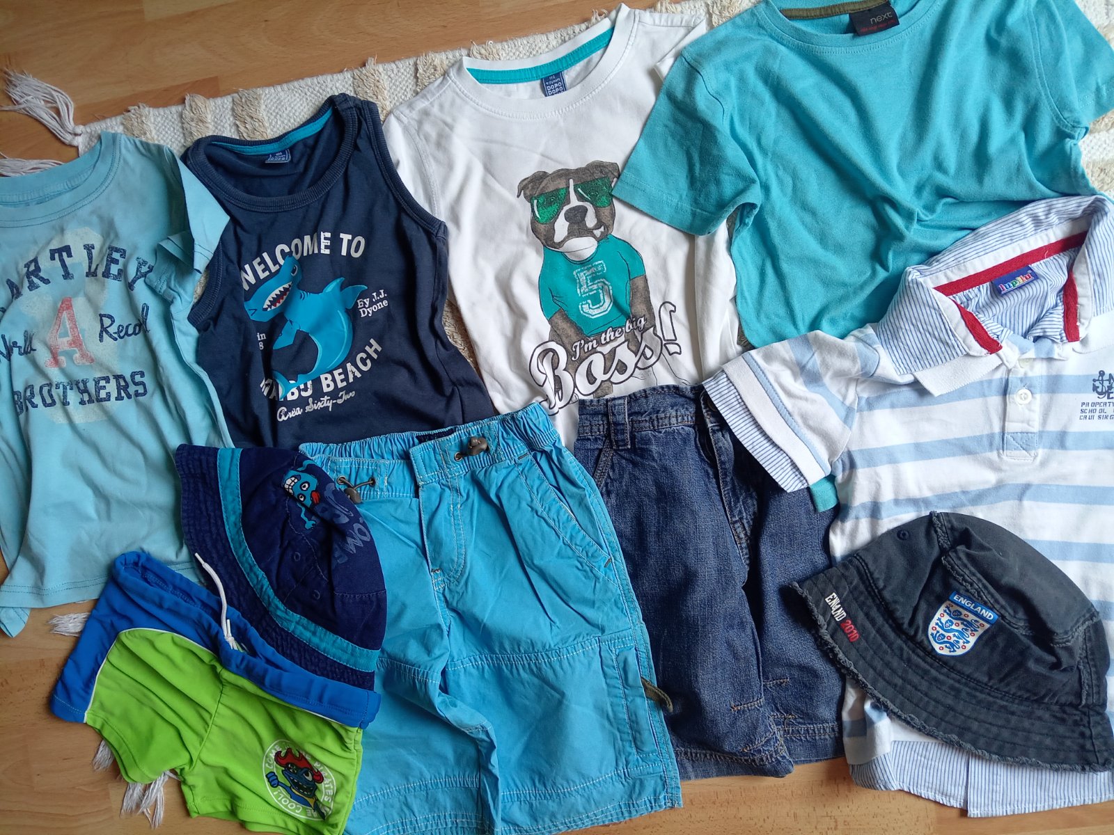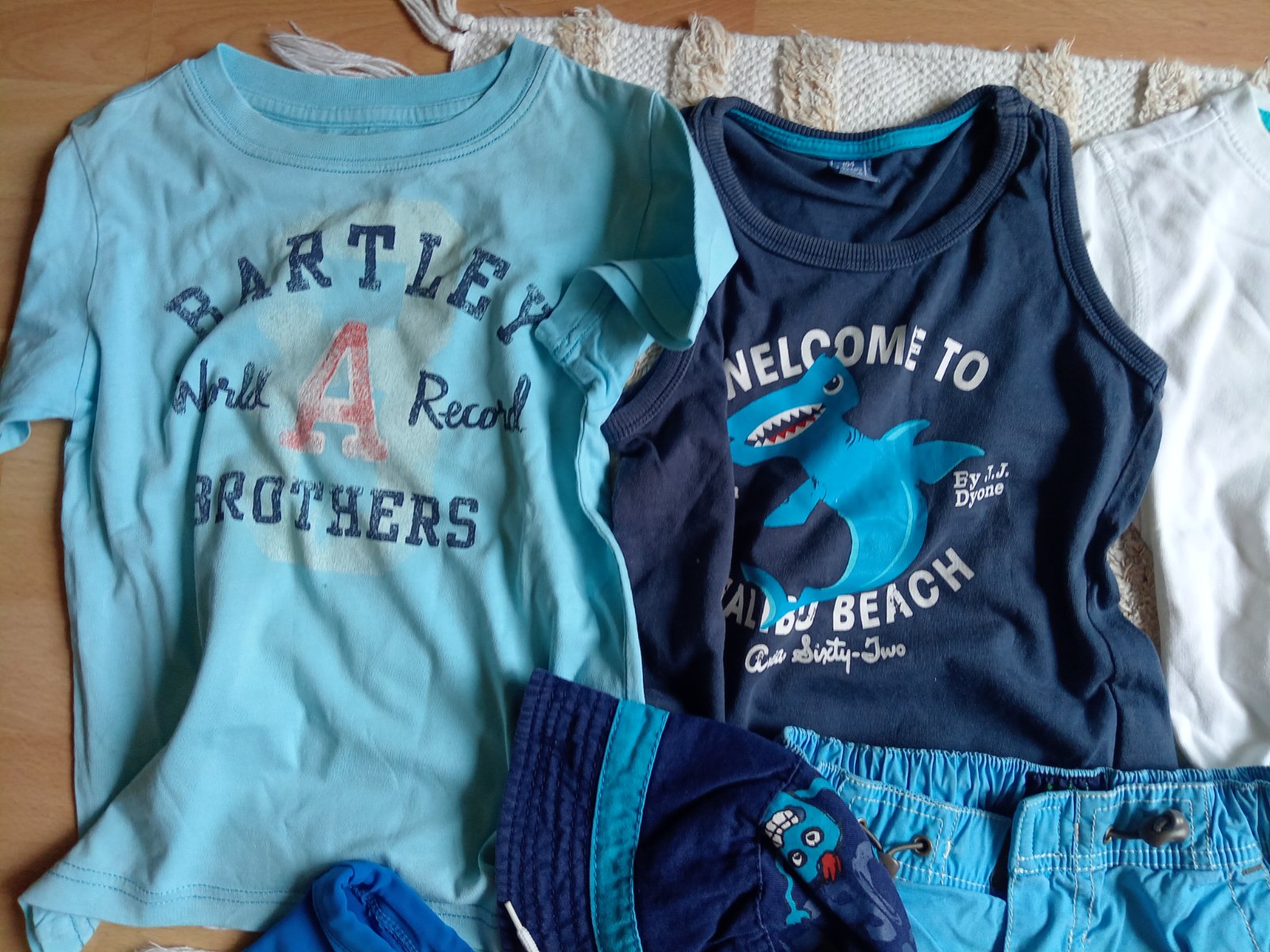 komplet vecí pre chlapca na leto veľkosť 104/110.. odporúčam, všetko veci bez poškodení...