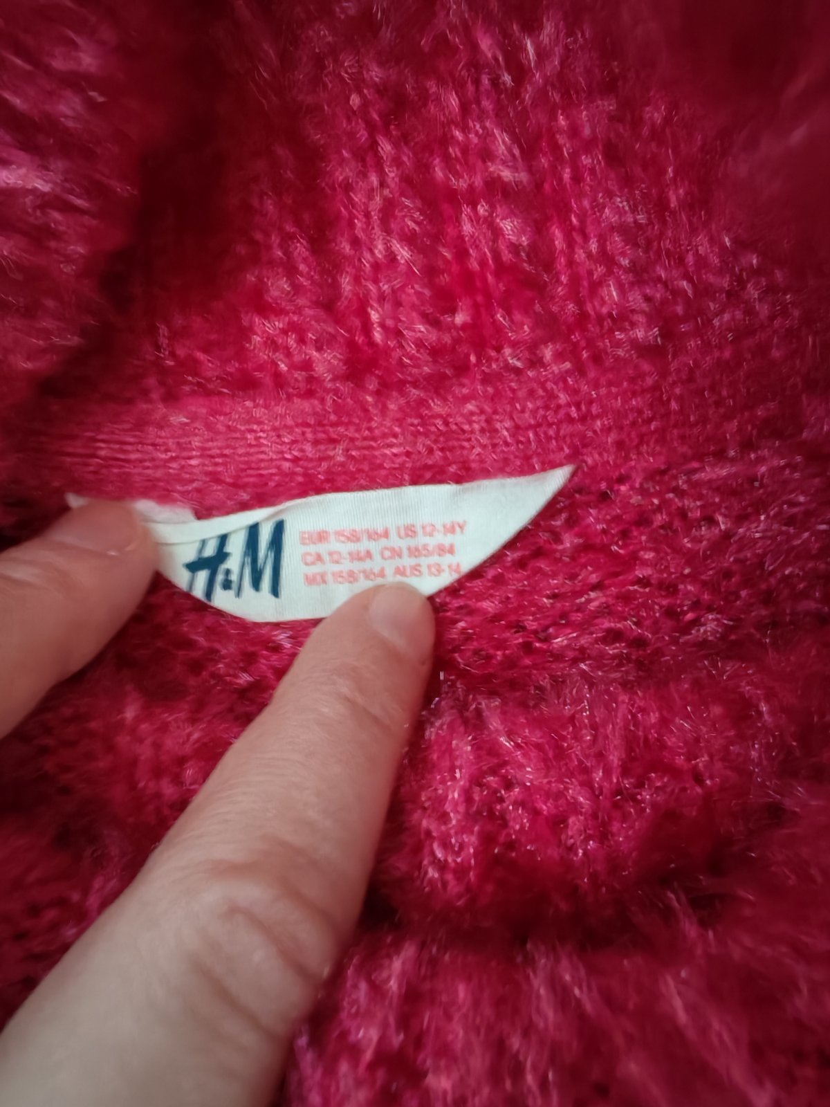 Sveter ružový farba skresluje je výrazne tmavo ružová bez poškodenia zn.H&M veľ.158/164 sadné aj na 152/158 podľa mňa.