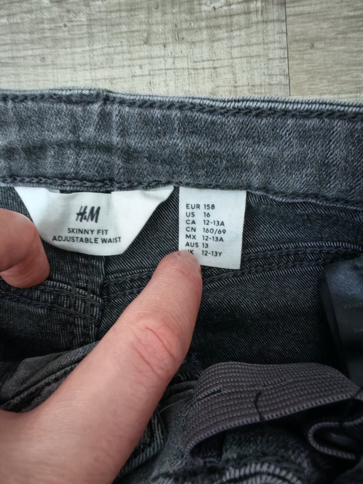 Sivé rifle veľ.158 zn.H&M málo nosené v zadu na zadku trochu zatiahnuté nie je tam ale diera viď foto nebyť toho sú v top stave
