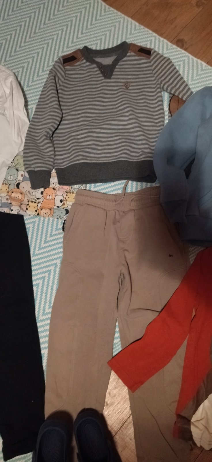 Chlapc balík veci vhodné do škôlky všetko veľmi dobrý stav , svetriky košele nohavice tepláky ,topánky v.29 crocsy 29, čiapka mikina, veľkosť cca 5-6 rokov všetko 22 e