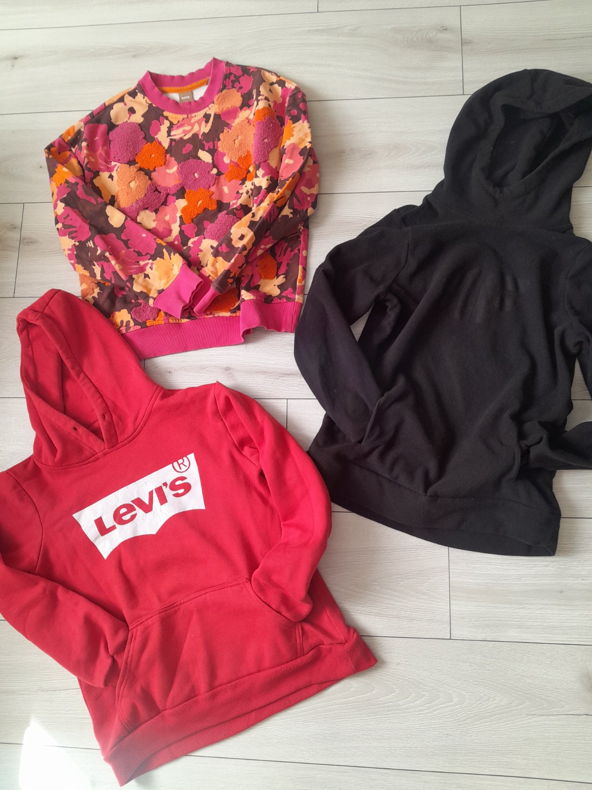 Čierna značka 4f veľ.xs bez poškodenia, farebná xs boss, červená levis pridám zdarma je nosena viac iba spolu po kuse nepredávam cena symbolická