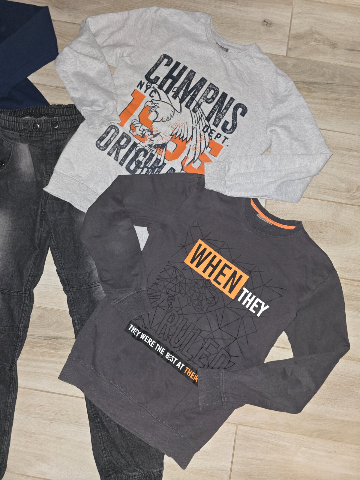 Oblecenie bez poskodeni 2x oblexene c158/164 bledoseda mikina a a rexom nova