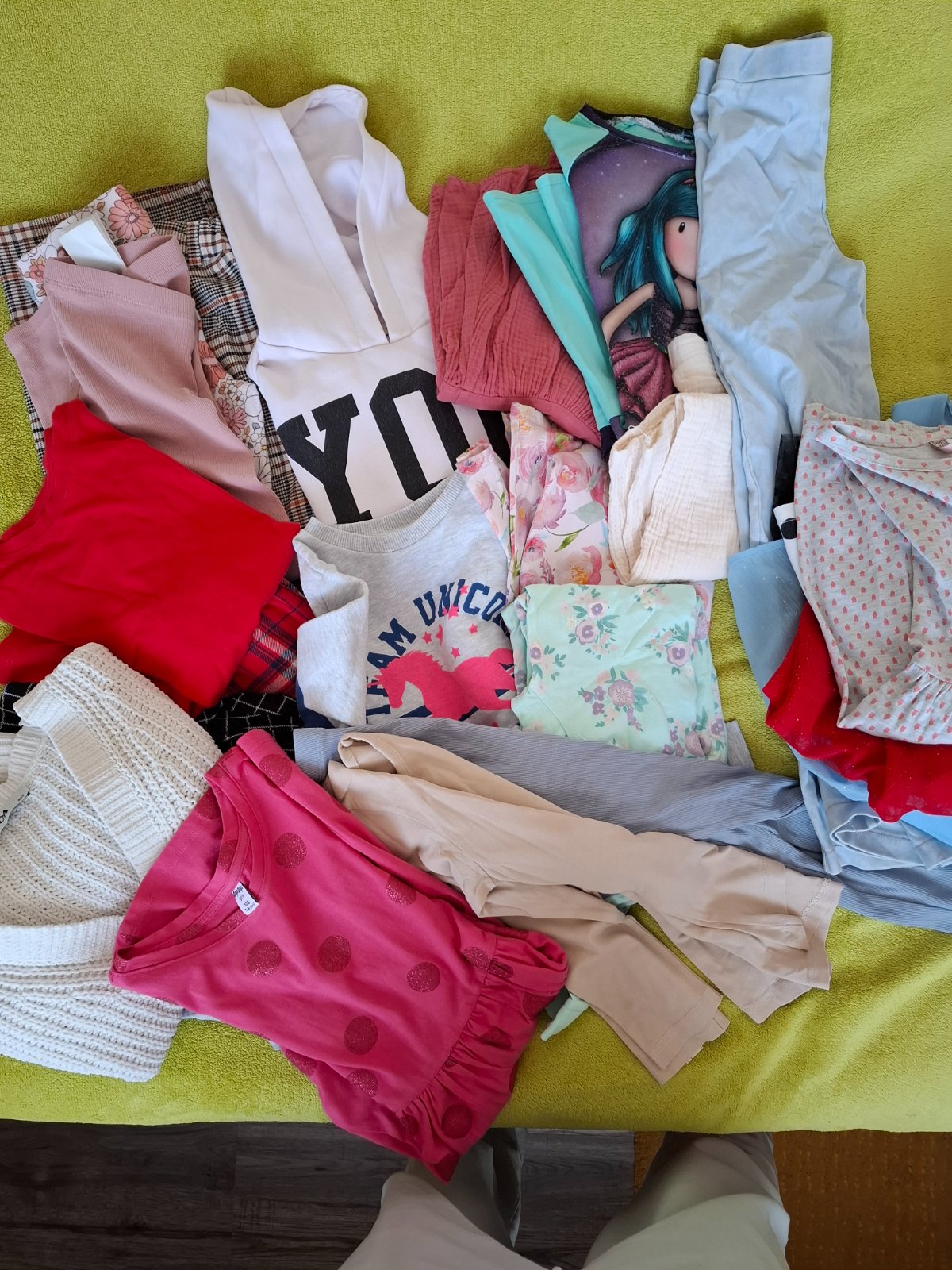 3x sveter,3x tricko dlhy rukáv,2x tricko krátky rukáv,1x čierne rifle,1x velmi hrubé legíny,1x sukna,2x saty dlhy rukáv,5x letné saty,3x kraťasy