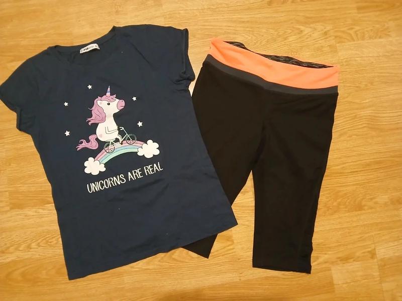 Tricko oblecene par krat-nevyblednuté, leginy nenosene.