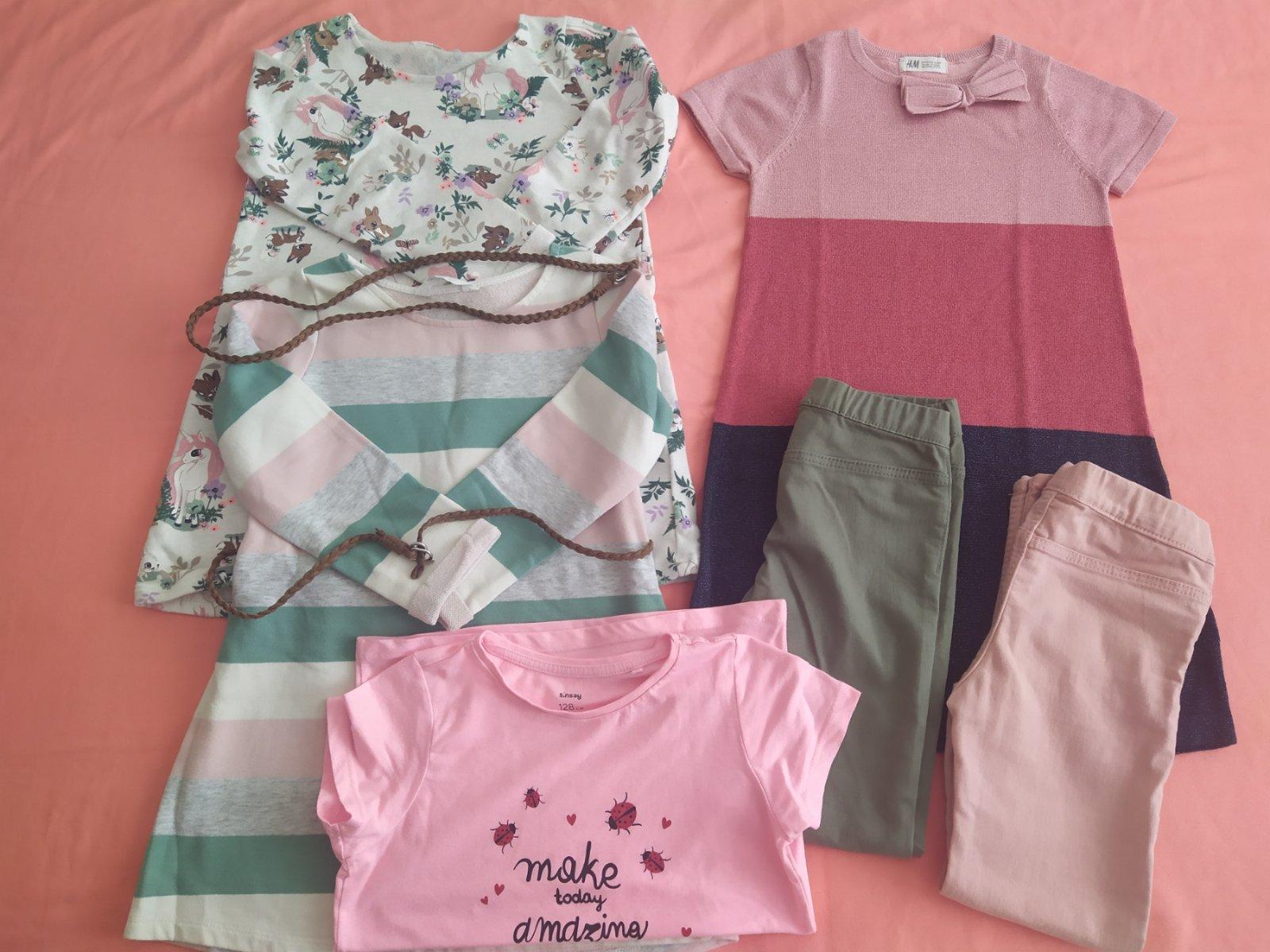 Balík oblečenia, veľkosť 134/140. Sú tam tričká s dlhým rukávom, sukňa, rifle, legíny,tepláky, svetre a mikiny.