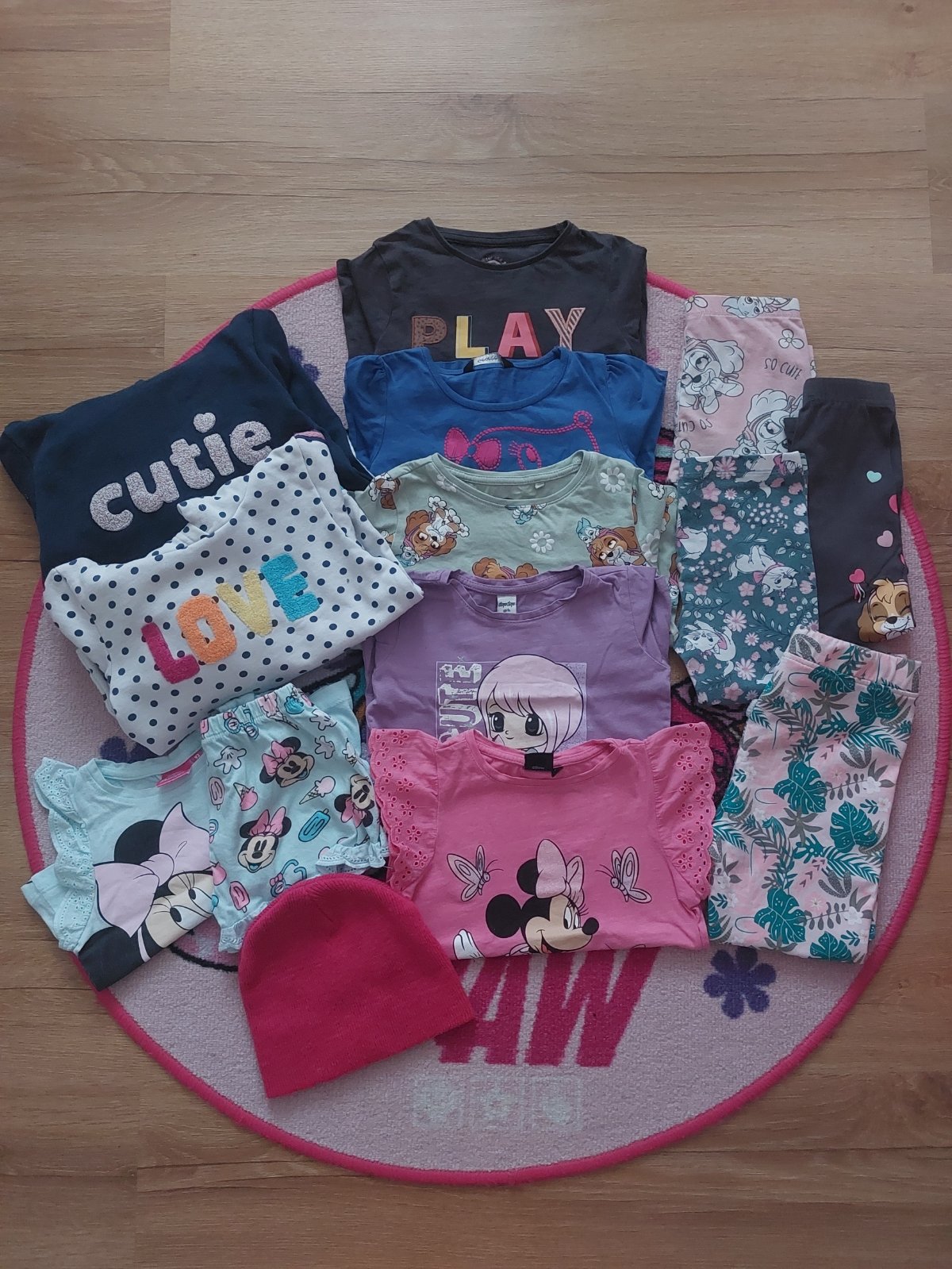 Na donosenie pre nenáročnú maminku. Na unicorn legínach dierka na kolene. Rožové pančuchy vyšúchane ale ešte poslúžia. Na bordových pančuchách dierka.Na pyžamku fliačik.Na ostatných už vidno pranie...