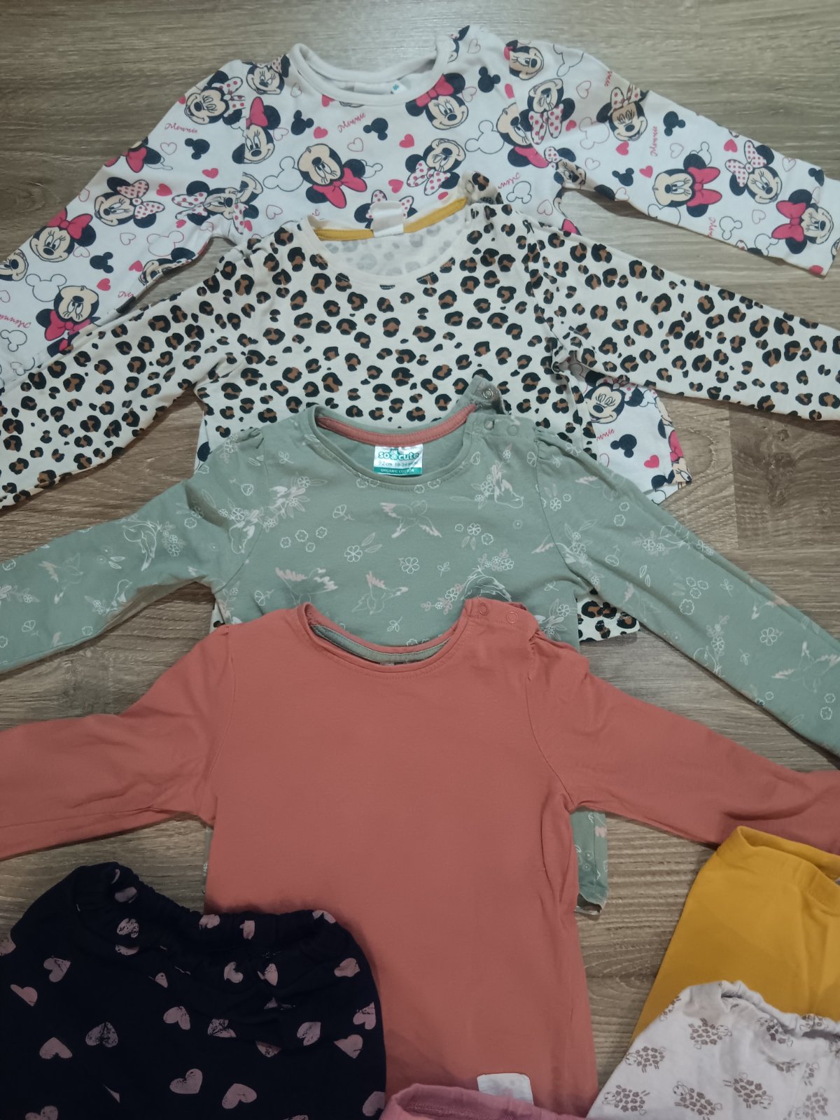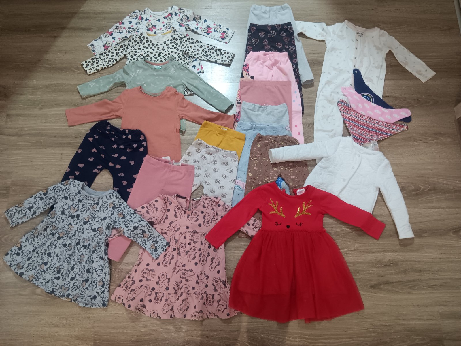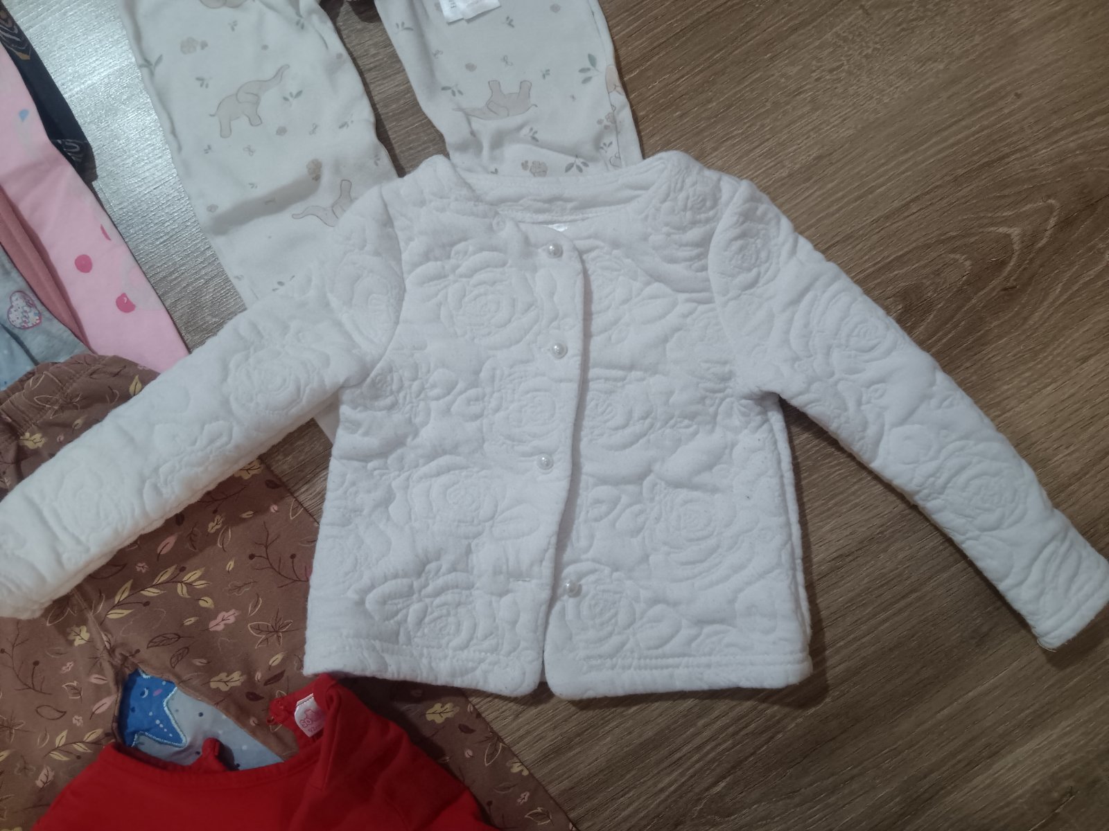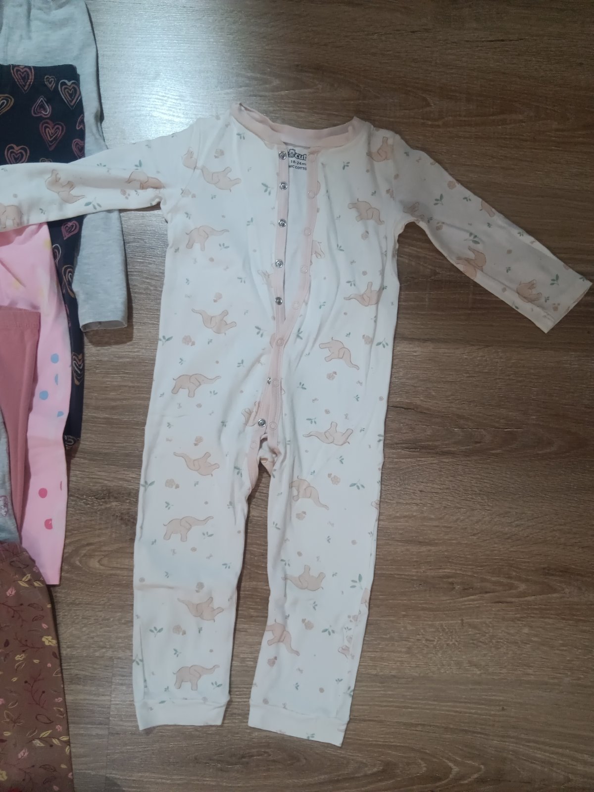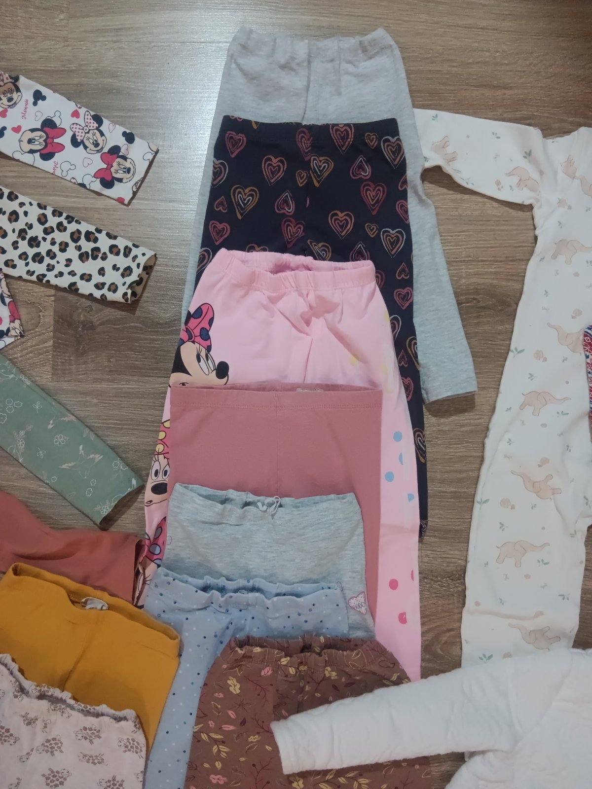 Na donosenie pre nenáročnú maminku. Na unicorn legínach dierka na kolene. Rožové pančuchy vyšúchane ale ešte poslúžia. Na bordových pančuchách dierka.Na pyžamku fliačik.Na ostatných už vidno pranie...
