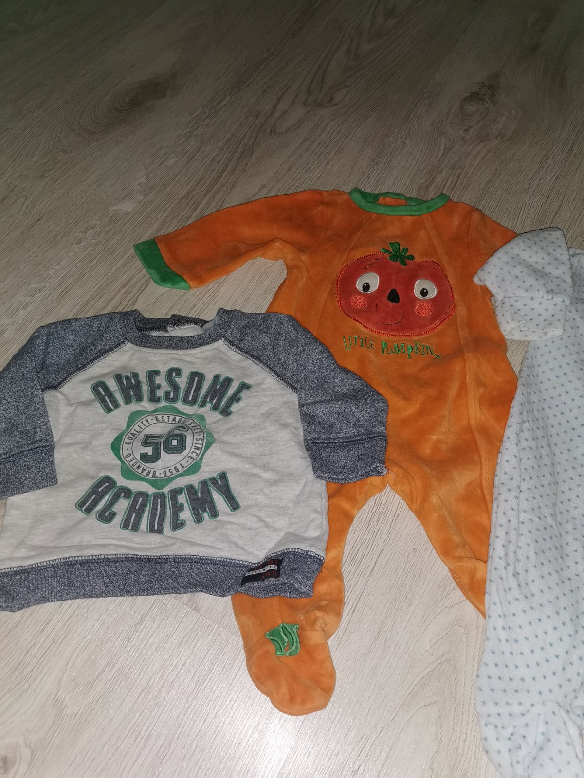 Balíček oblečenie obsahuje mikinu značky F&F, oranžové dupačky značky TU, dupačky alebo pyžamko na patenty s mackom značky Mothercare - predané a tenší svetrík na zips s kapucňou značky Early Days. Oblečenie je v top stave, bez poškodenia. Svetrík s kapucňou predaný.V