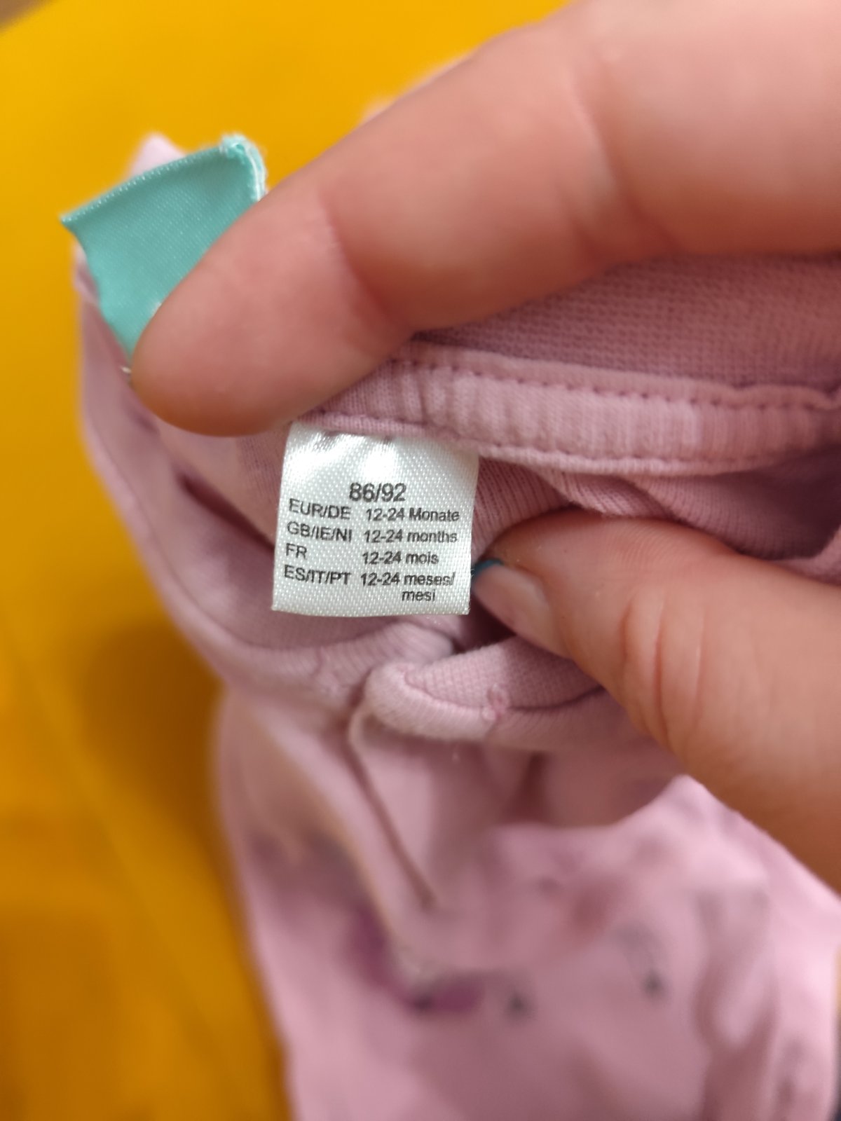 Nosene,chyba je len na ruzovej mikine minnie flak a bielych leginach.znacka disney,pepco,lupilu,ergee.