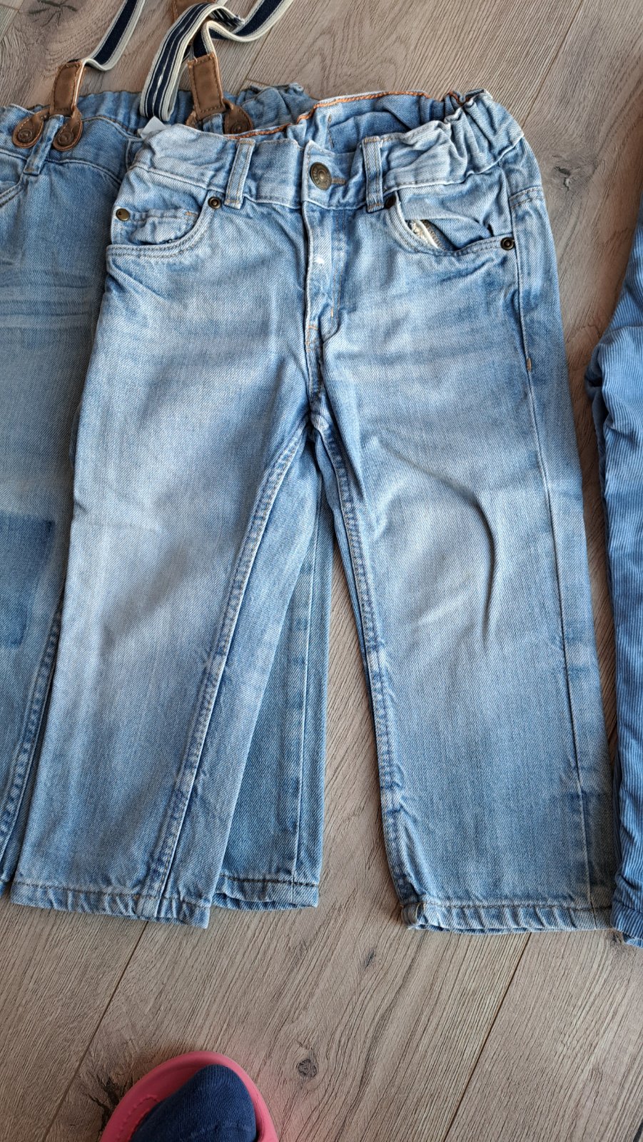 3x zateplené nohavice (Mickey Mouse béžové, Pepco riflové, Ergee mančestrové)