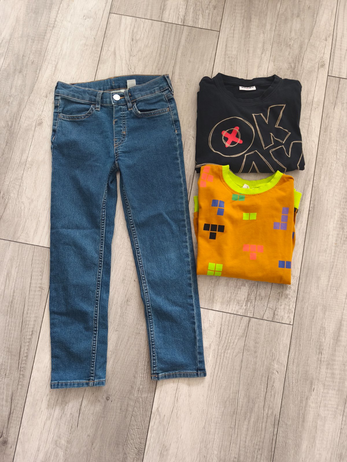 Veľmi pekný stav. Slim rifle zn. H&M, tričká Bonprix.