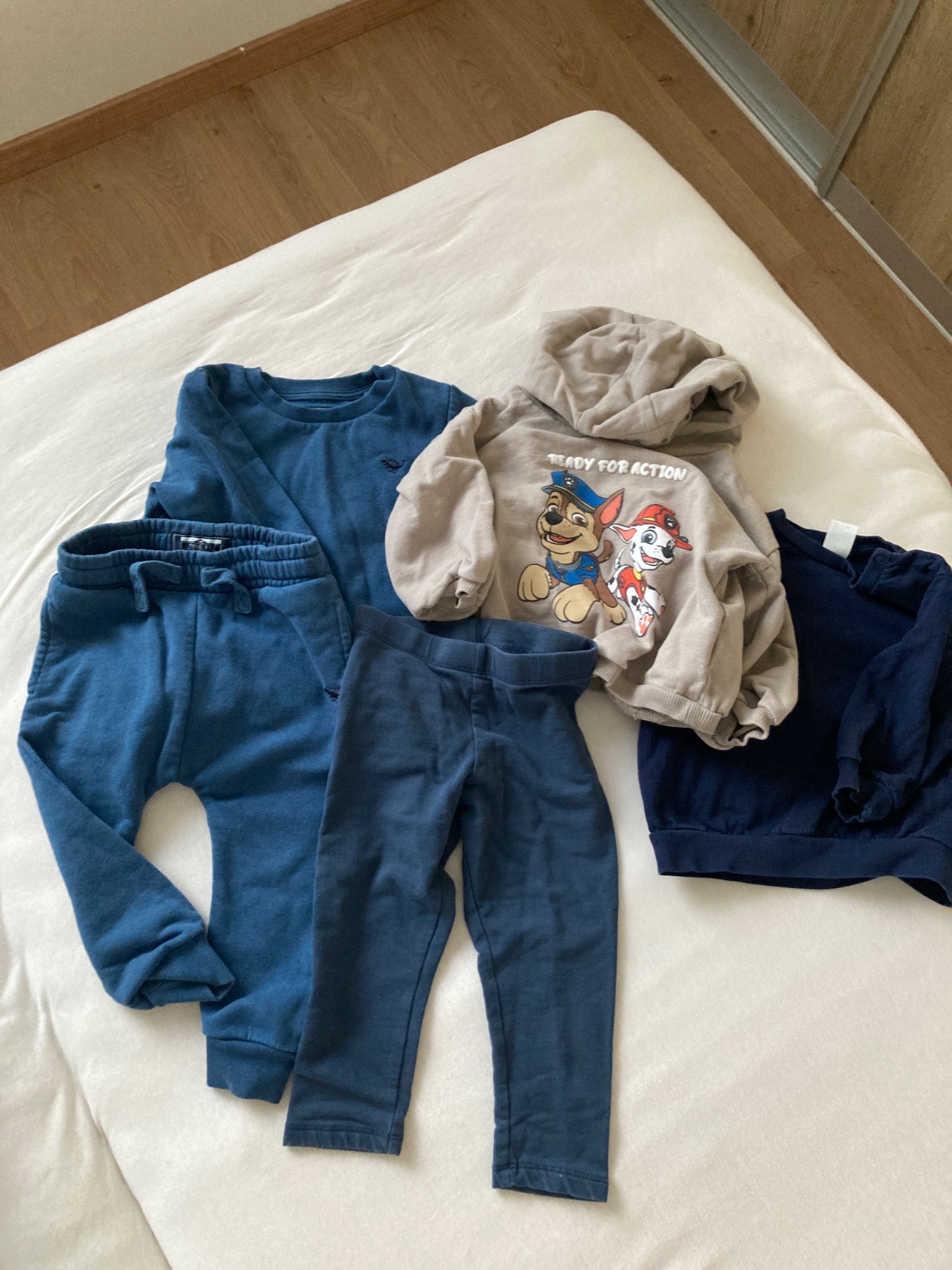 Jednotlivé položky: dvojdielna tepláková súprava Next, zateplené legíny Lindex, Reserved mikina s kapucňou paw patrol, HM mikina bez kapucne