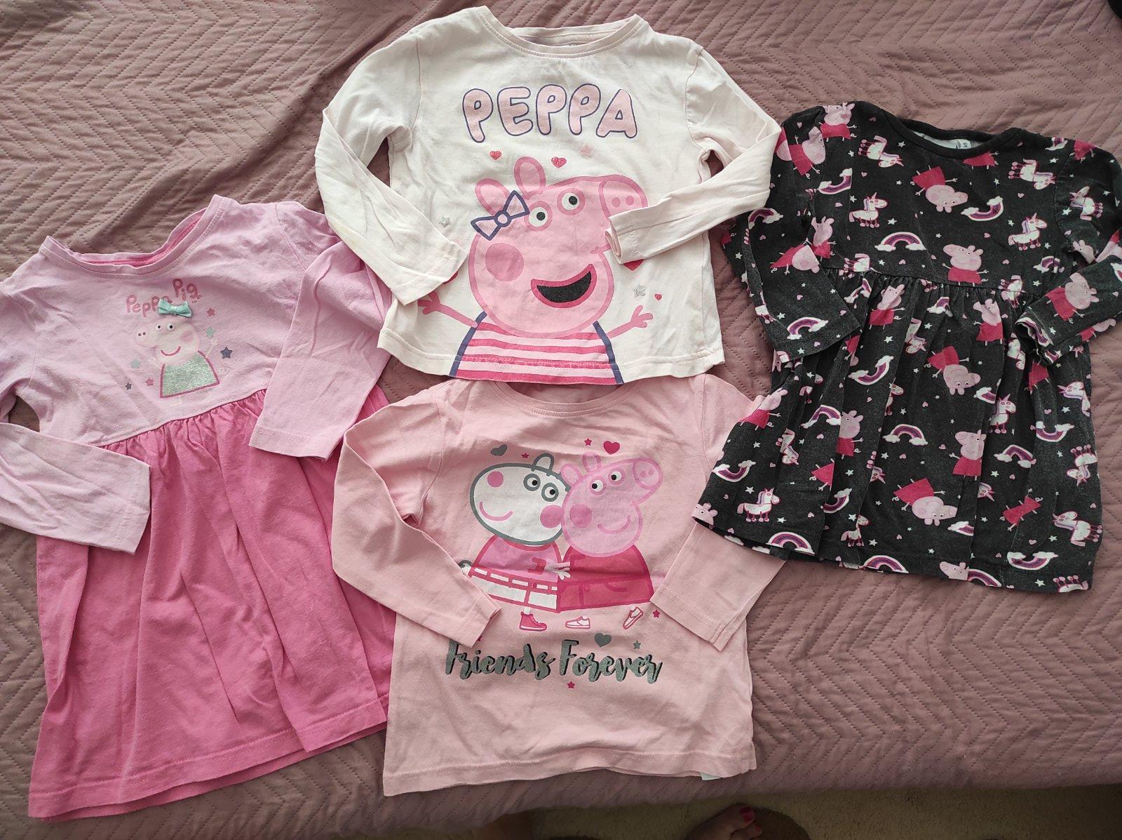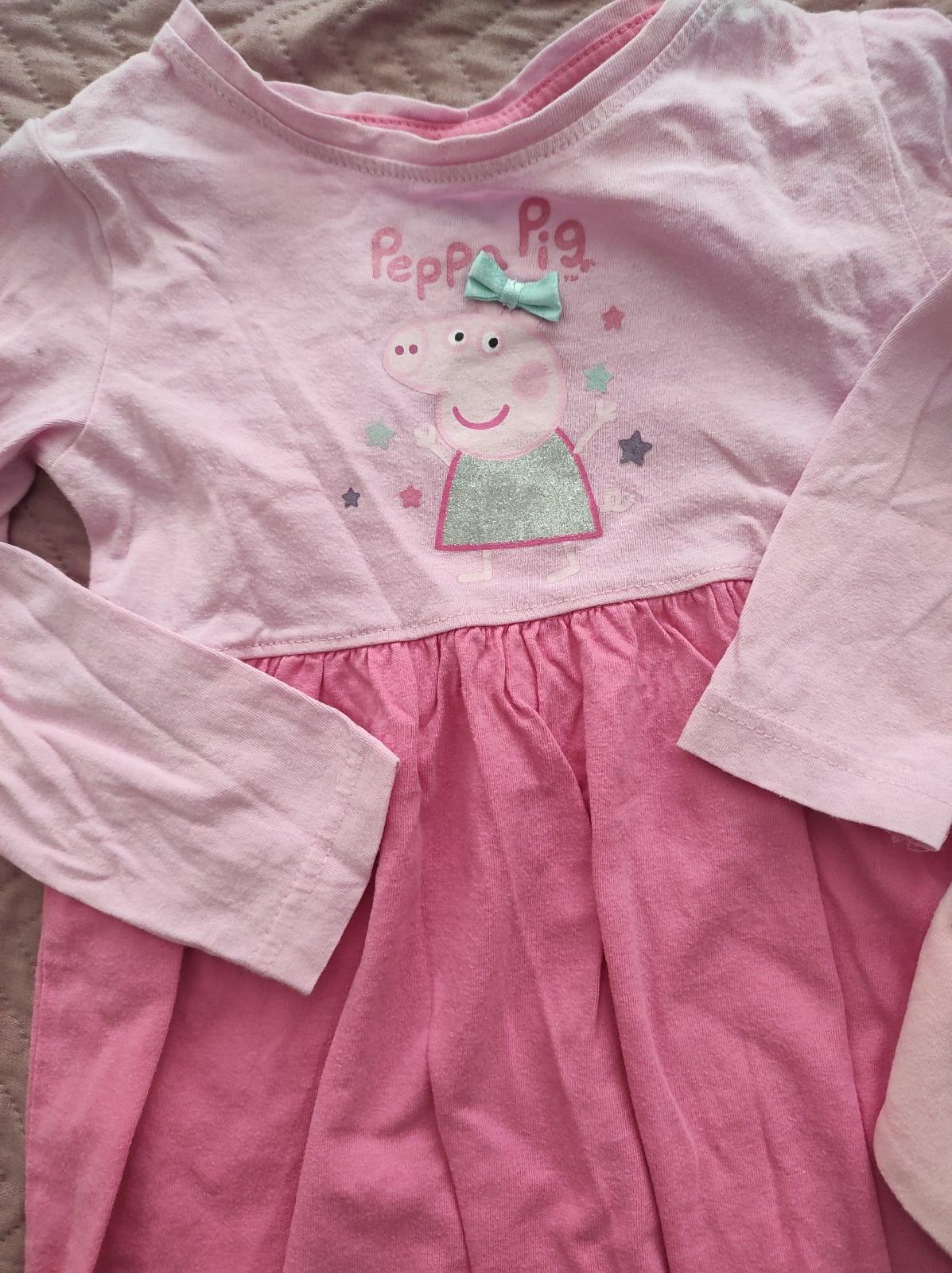 Predám nosené oblečenie, stále nositeľné, čierne šaty na donosenie, fľak na jednom rukáve, veľkosť 92. Cena spolu 7€