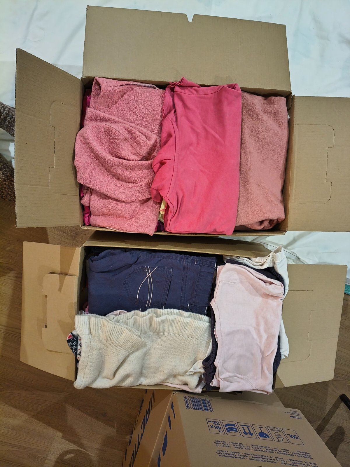 Ponúkam na predaj balík oblečenia väčšina vo veľkosti 98. Niektoré sú aj veľkosti 98/104. V balíku sa nachádzajú svetre, mikiny, legíny, tepláky, teplákové súpravy,rifle, šaty,sukne, tričká s dlhým aj krátkym rukávom, pyžamá, oblečenie do dažďa, zimná vetrovka s otepľovačkami. Približne 100ks oblečenia. Oblečenie je nosené ale stále v peknom stave. Oblečenie predávam ako balík ale v prípade záujmu predám aj jednotlivé kúsky z neho.