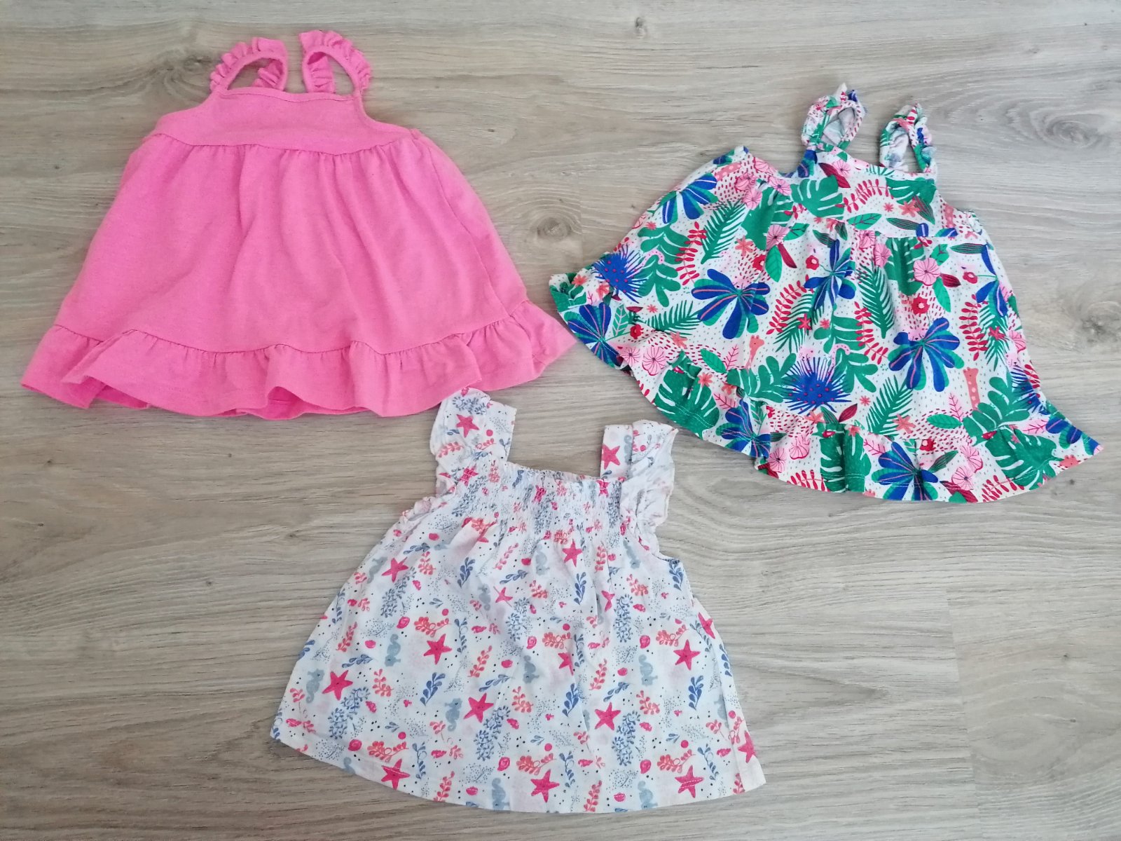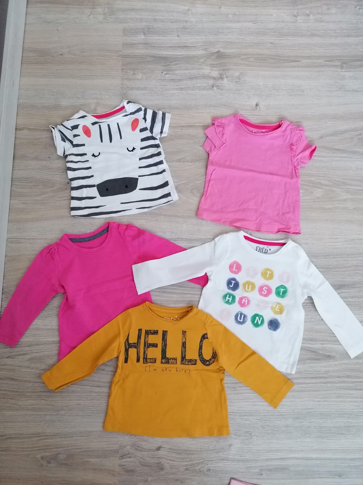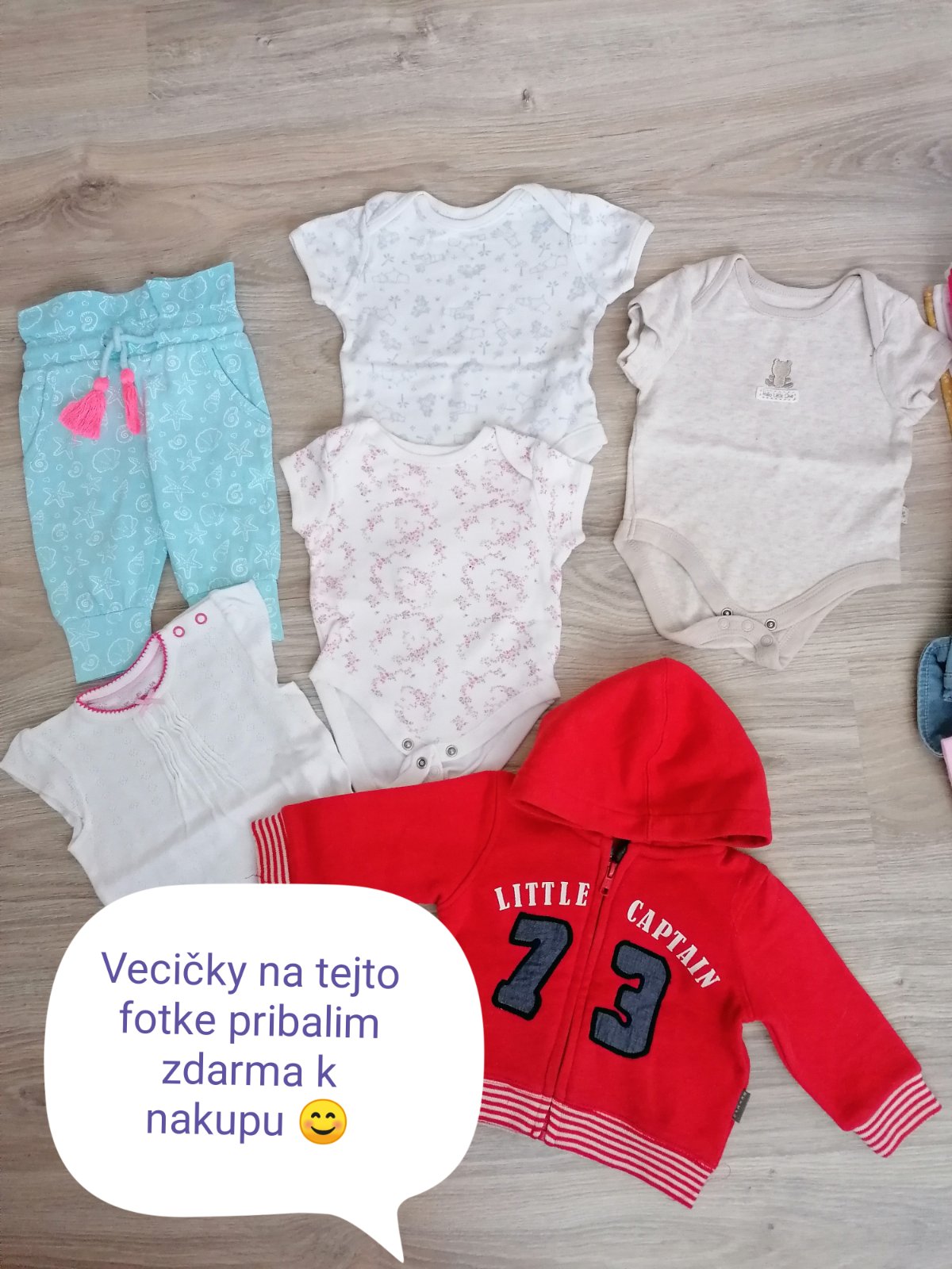 Predám väčší balíček oblečenia v. 74 - 6-9 mesiacov. Vecičky sú nosené, po 2 deťoch. Známky nosenia sú: vyblednuté farby z prania, popraskaná potlač a mini žmolky. Žiadna z vecí nemá ani fľaky, ani...