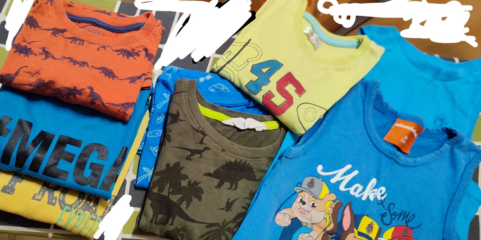 Ponukam na predaj krasne veci pre chlapca do skolky alebo na bezne nosenie. Su nosene ale velmi malinko, nic nie je vyblednute, ziadne flaky, dierky, su vo velmi dobrom stave, vsetko maximanle do 5...