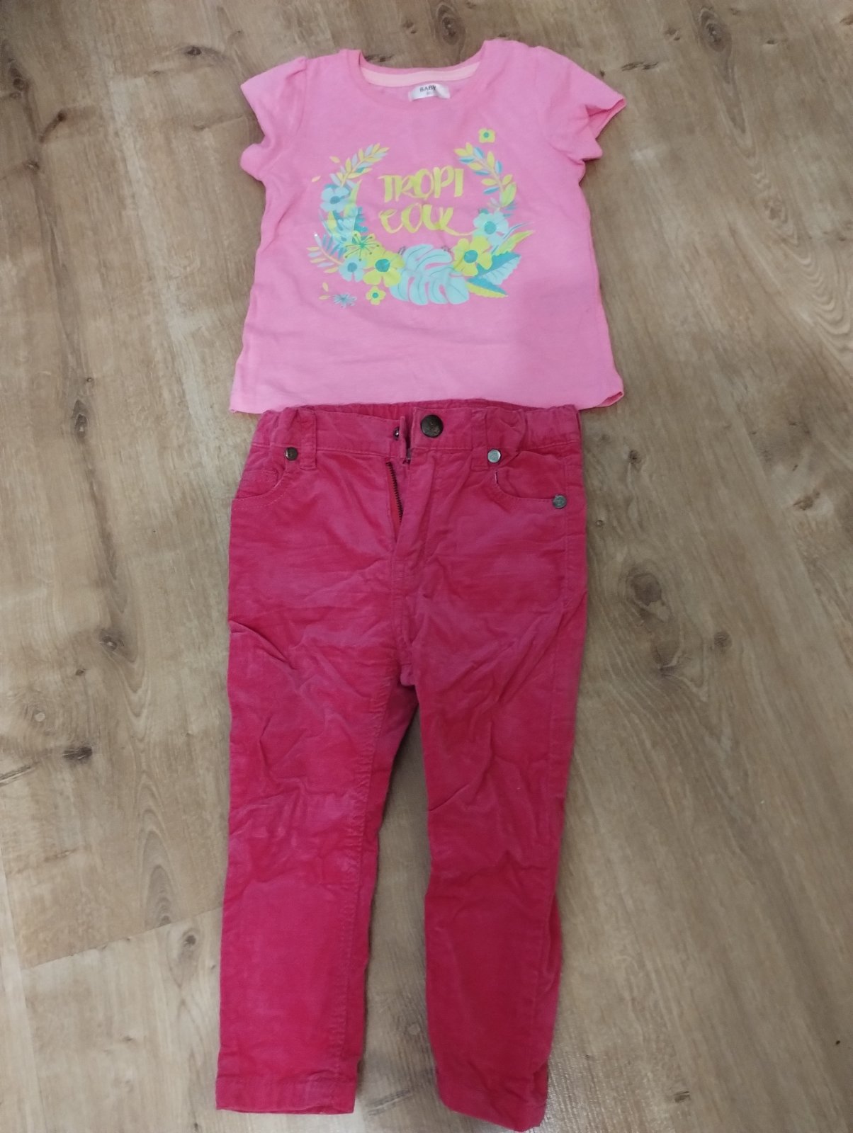Ponúkam na predaj dievčenské legíny (2 ks - tmavo fialové s bielymi bodkami a tmavo sivé s čiernymi srdiečkami) a bledo ružové body s krátkym rukávom s farebnými srdiečkami. Všetko značka H&M, veľk...