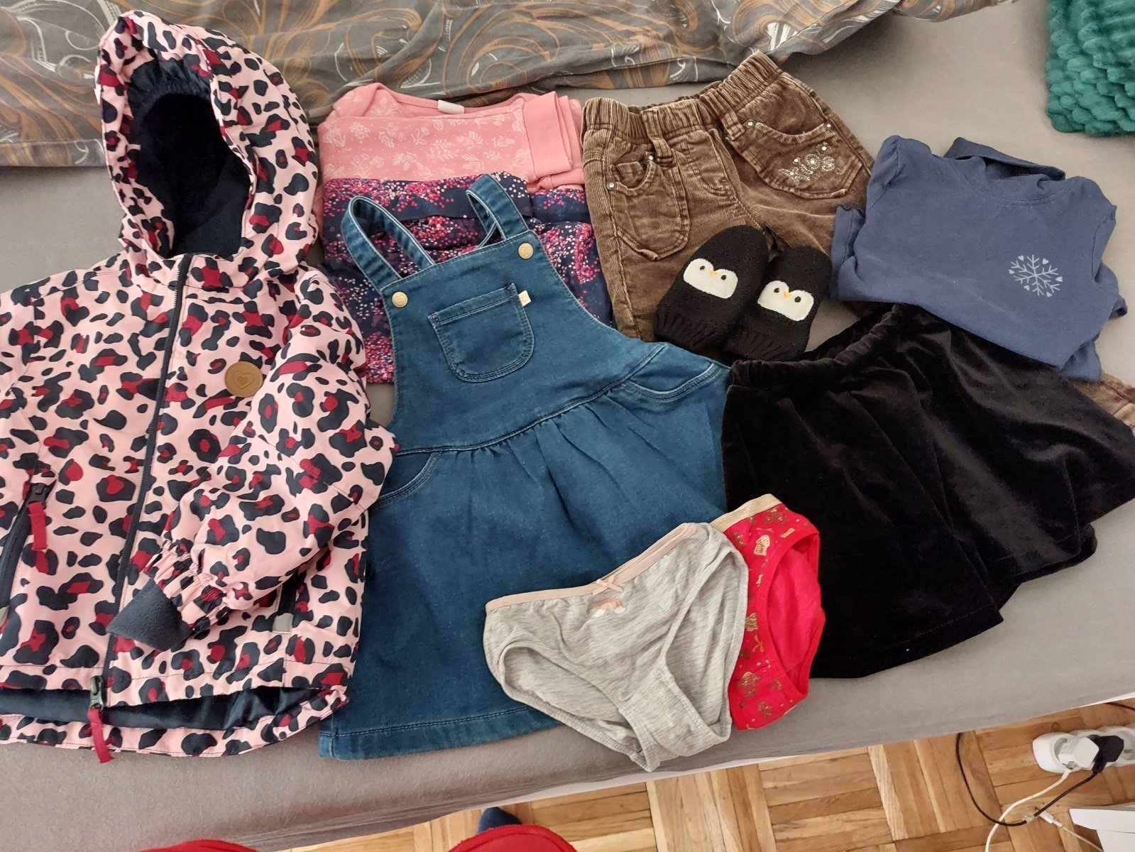 Predám mix balik pre dievcatko ,velkost 92. Balik obsahuje prechodny kabát, dvojdielne pyzamo,2 ks pulover, 1ks rifle suknu,1ks zamatové zvonené nohavice, rukavice, zamatovu sviatocnu suknu, nové nohavicky+ ponozky za 8€ top stav
