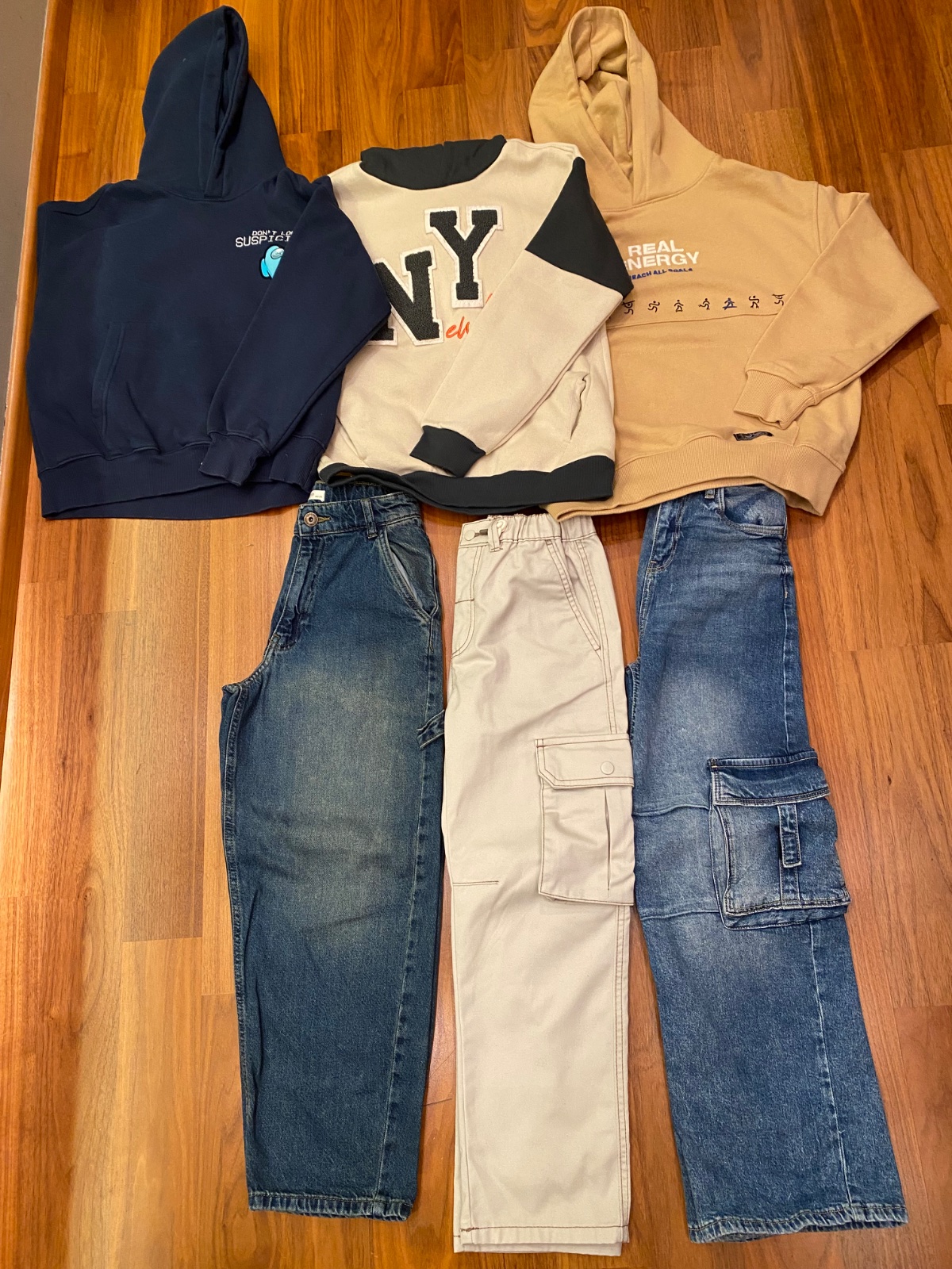 Balík nohavíc a mikín takmer nenosených, max 1-2x. Značky zara, reserved, c&a. Syn ma obľúbených pár vecí a tie nosí dokola, čiže niektoré len vyskúšal. Predám aj samostatne