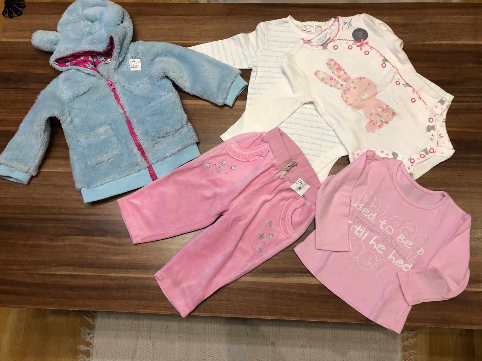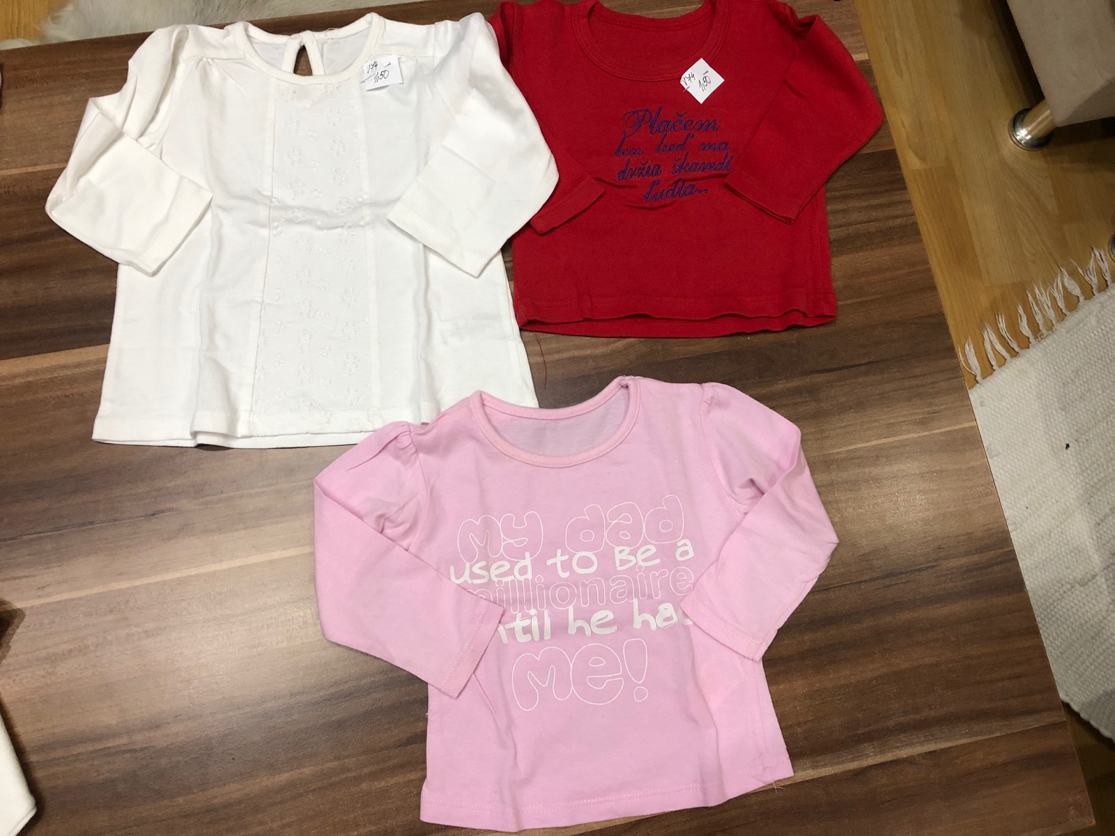Milé mamičky i nemamičky. Ponúkam oblečenie z môjho šatníka a po mojich dcérkach. Tovar posielam SK poštou poštovné podľa sadzobníka Slovenskej pošty, až po pripísaní peňazí na účet. Ak máte o niektorú vecičku záujem možem aj rezervovať, berte to potom však ako záväznú objednávku. Ak sa Vám niečo zapáči kľudne sa pýtajte, rada odpoviem. Vecičky nepremeriavam, naozaj to nestíham všetko merať, oblecenie podla velkosti vacsinou zodpoveda, ak nie vtedy pridavam aj miery. Pri odbere viacerých kusov zľavička. Teším sa ak si niečo vyberiete. Ďakujem za ponuku výmeny, ale veci nevymieňam len predávam!