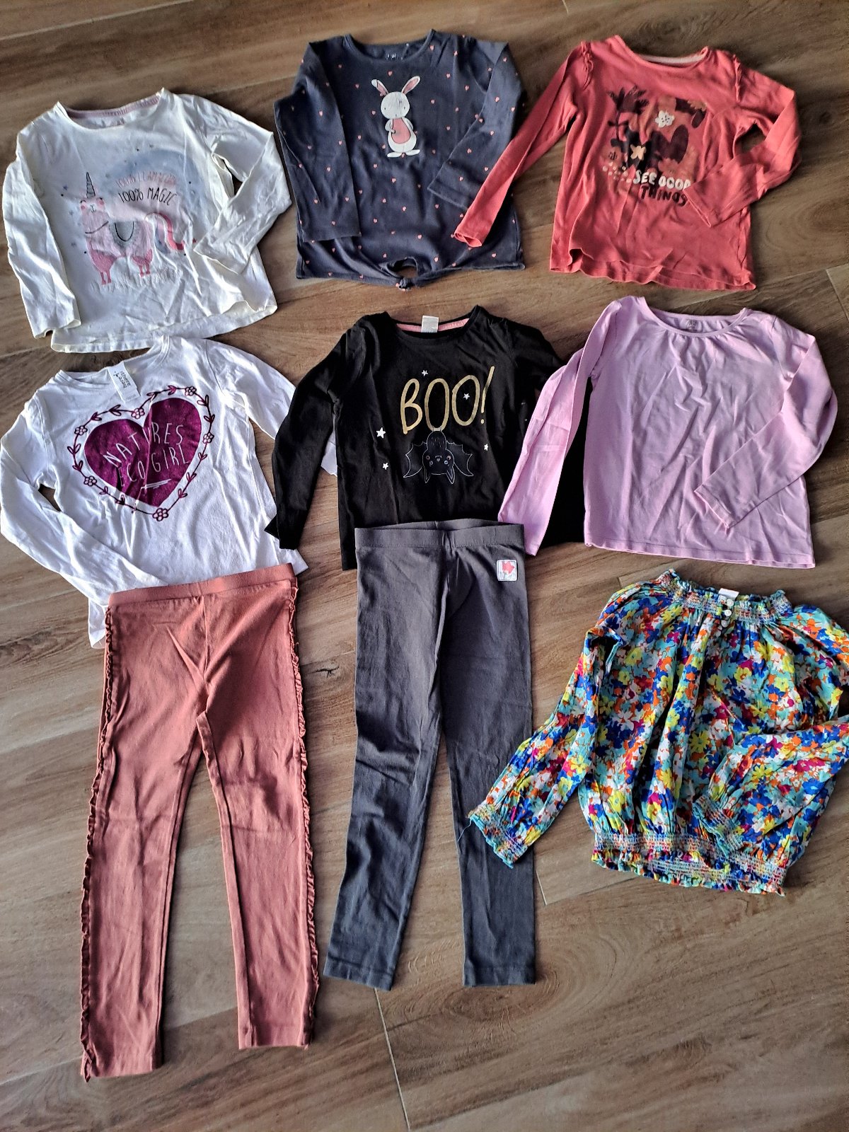 Veľkosť 122 - 128, fialová mikina 134. Nejaký fliačik sa môže nájsť, ale všetko veľmi pekný stav. Kľudne premerám. 5 eur plus pošta, prípadne Košice, Prešov a okolie.