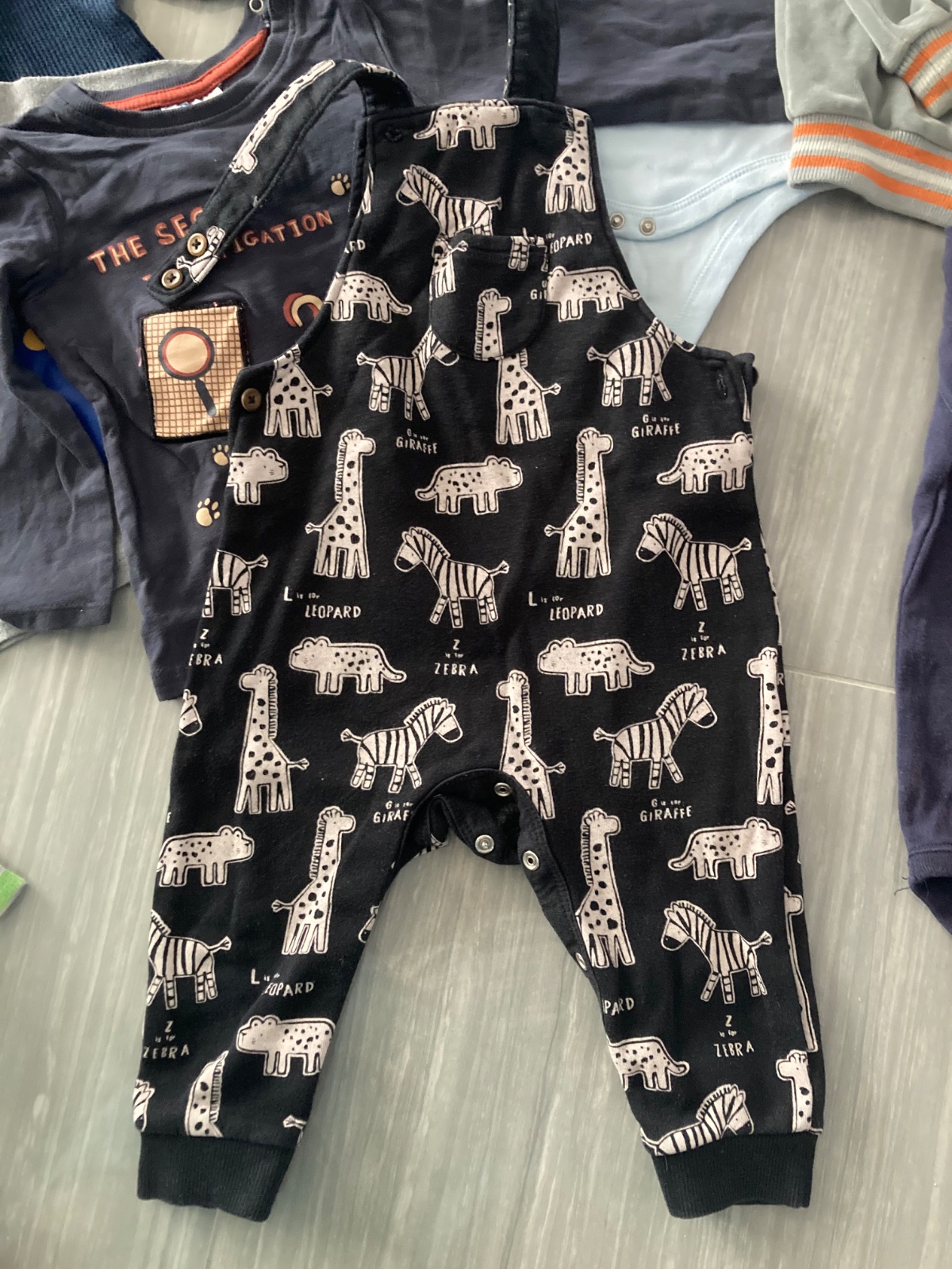 Prechodné oblečenie pre chlapčeka. Dve bundičky, svetríky, mikiny, tričká, rifle, nohavice na traky, tepláky, spací vak, dve letné súpravy. Mix rôznych značiek- Dirkje, Gymboree, Gap, HM.. bez poškodení a fľakov.