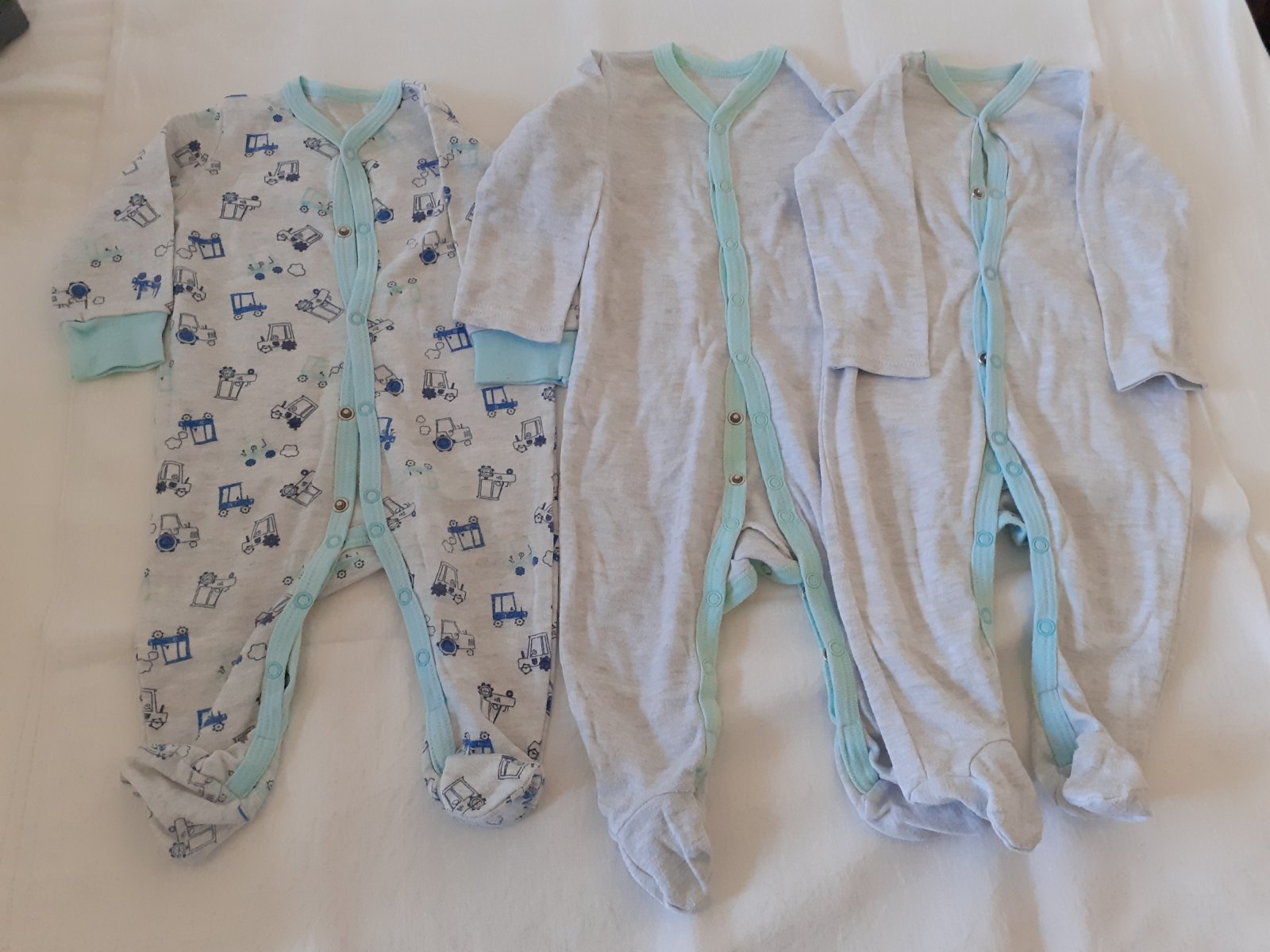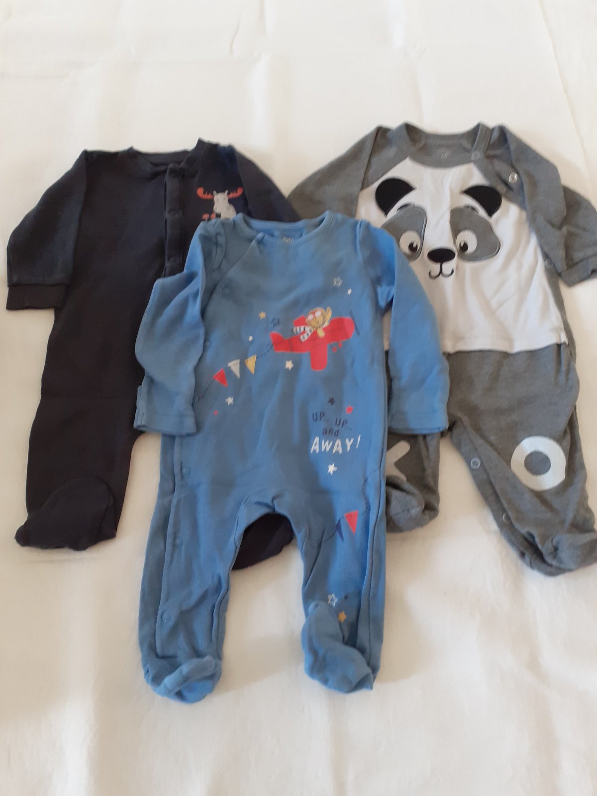 Balíček pyžamiek pre bábätko veľkosť 68. 8 kusov, už je na nich vidno nosenie-sú trochu ožmolkované s prania.