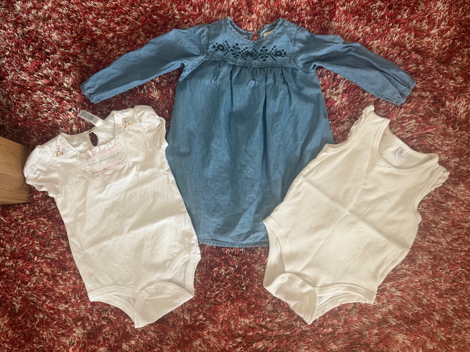 Mini letný balík pre dievčatko veľ. 86 (18-24m). Klobúčiky grátis. 2x nová súprava tričko+kraťasy zvyšok málo nosené. Cena spolu 10€.