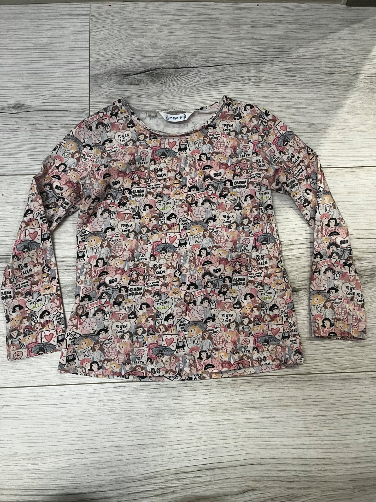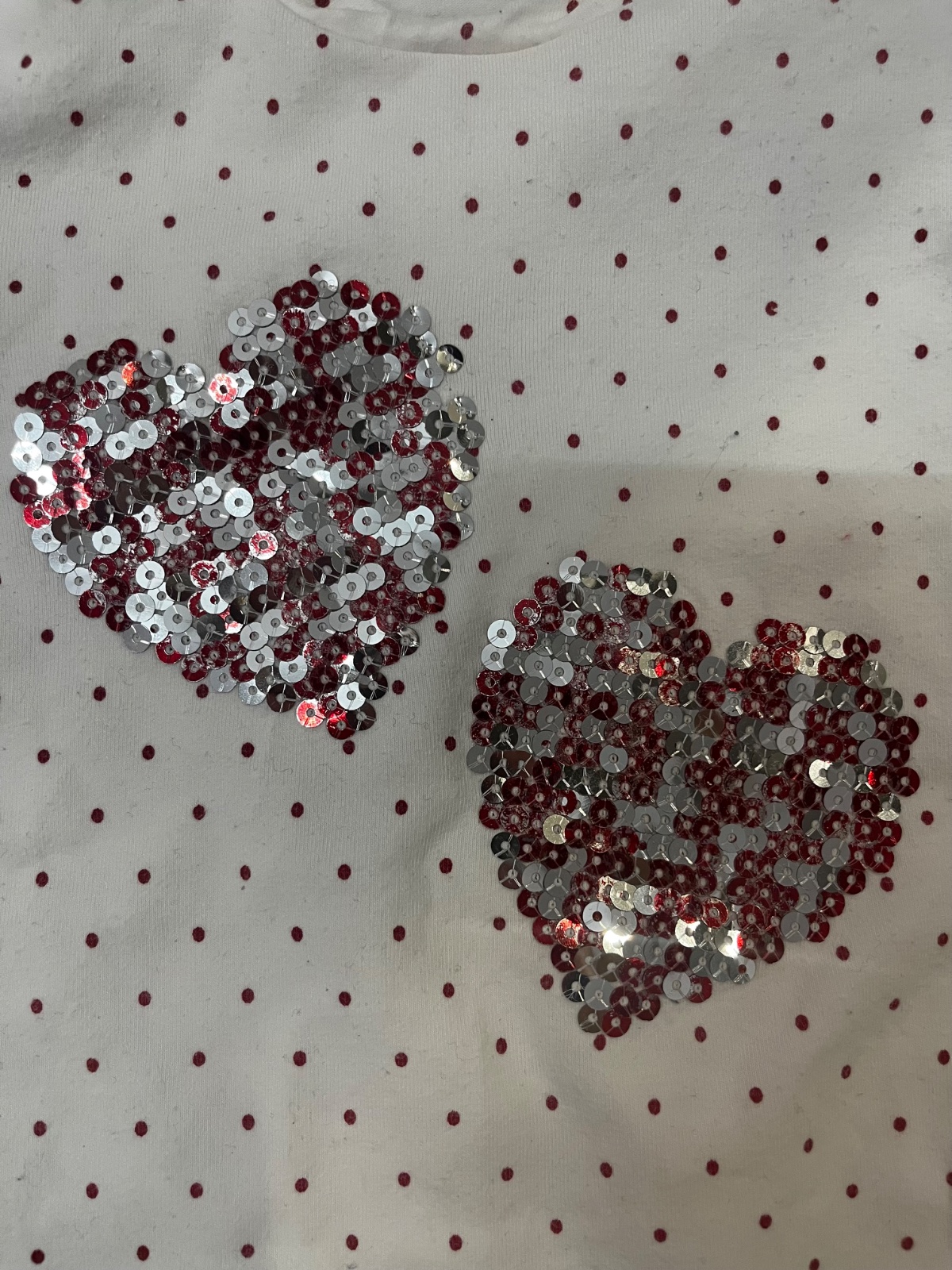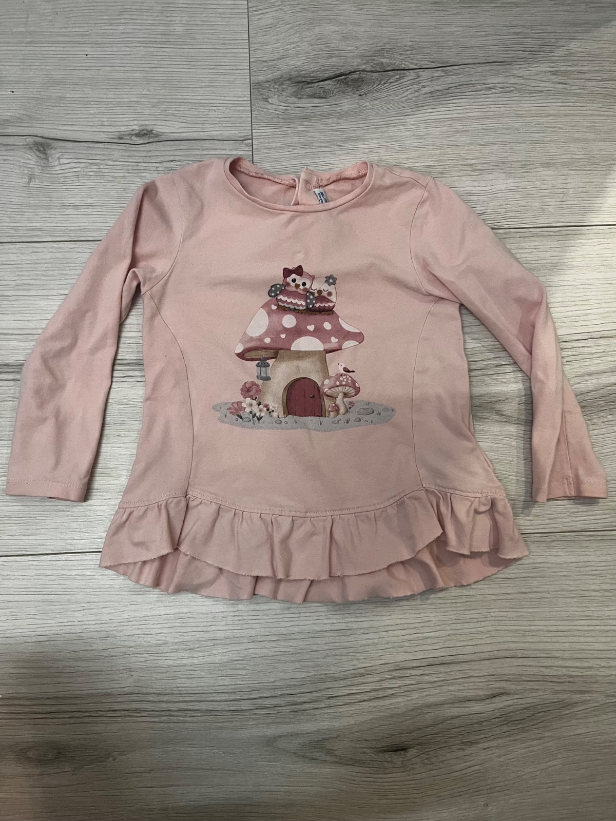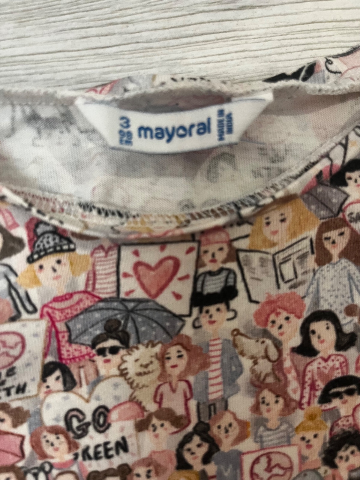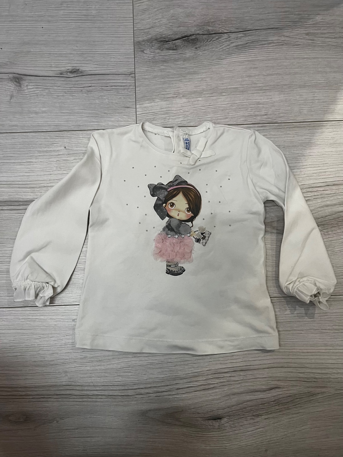 Predám balík dlhorukavovych topov vhodných do škôlky značky: Mayoral, veľkosť: 98. Na bielom tope s červenými bodkami sú červene flitriky mierne vysuchane.
