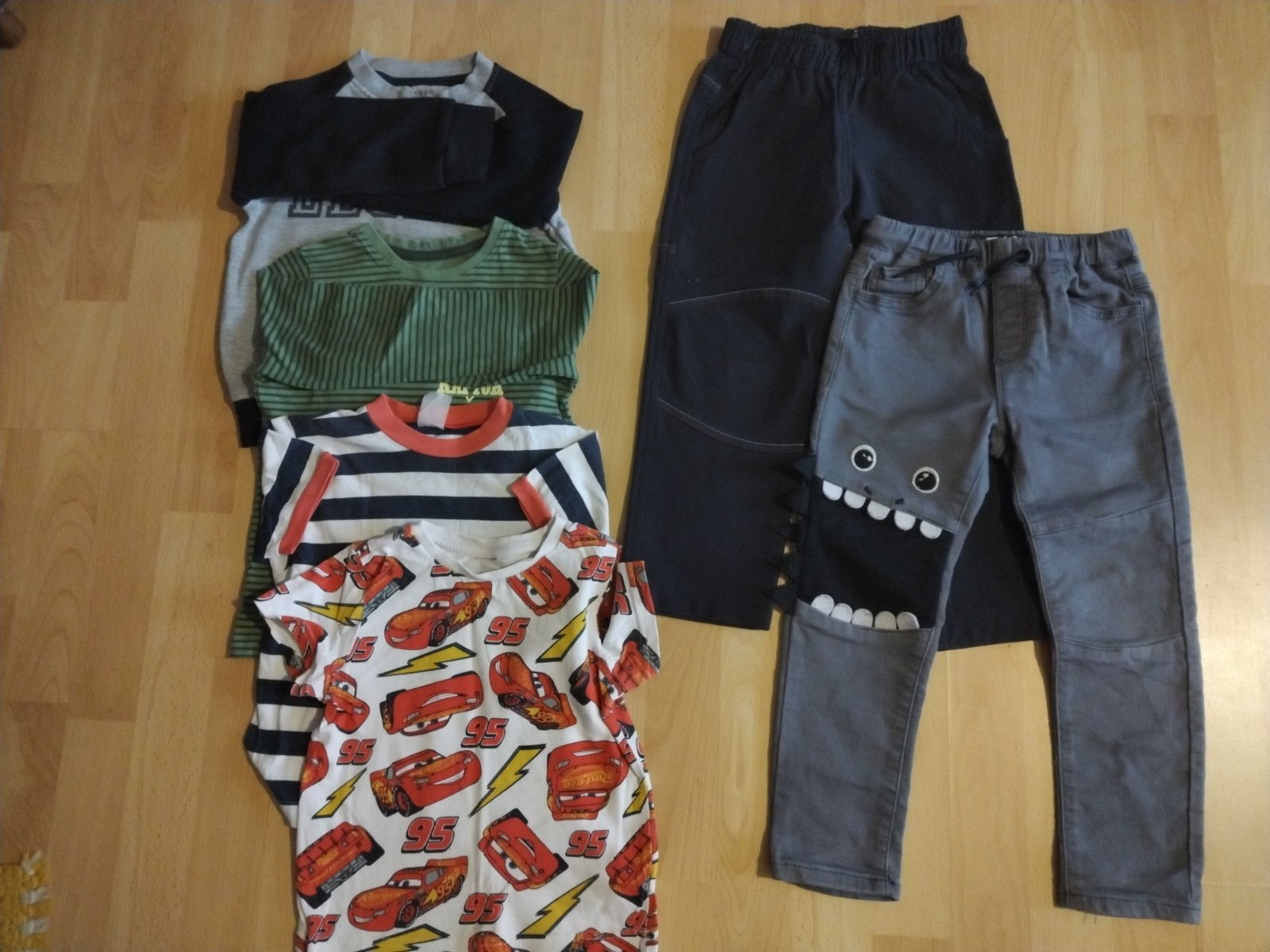 Predám balík zachovalého oblečenia pre chlapca, veľkosť 104. Obsahuje rifle, 2x mikina, 2x tričko. Cena spolu 7€.