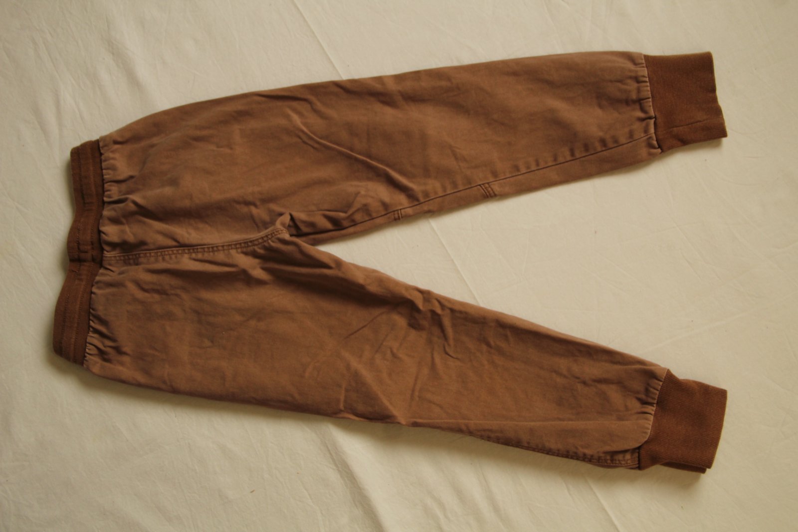 Bledohnedé nohavice, prírodné, pohodlné, majú pružný pás, sú v super stave. Ideálne na dobrodružstvá medzi deťmi.