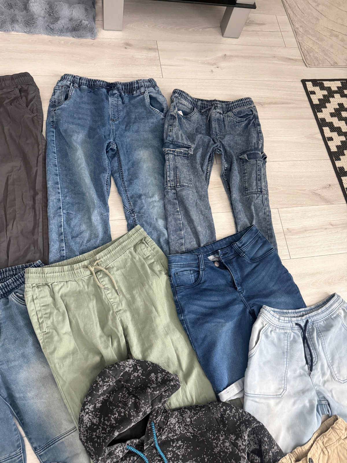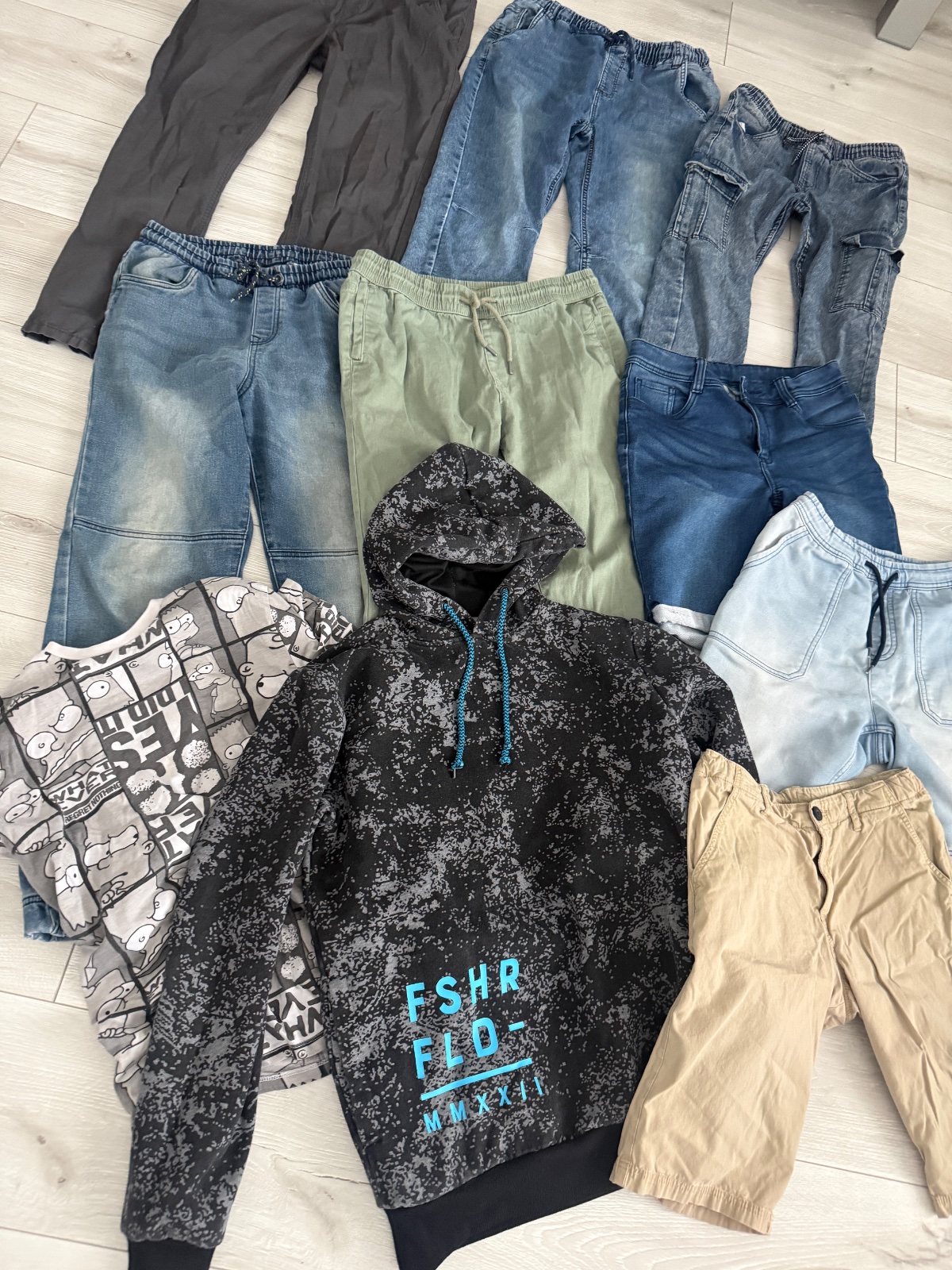 Predam balik oblecenia pre vysokeho a chudeho chlapca, velkost 158-164, nosili sme ako 164-ku. Vhodne do skoly. Dlzka nohavic cca 97-99cm