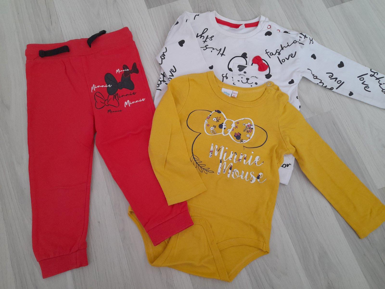 Tepláčiky Minnie, mikinka a body Minnie. Pekný nosený stav. Veľ. 86.