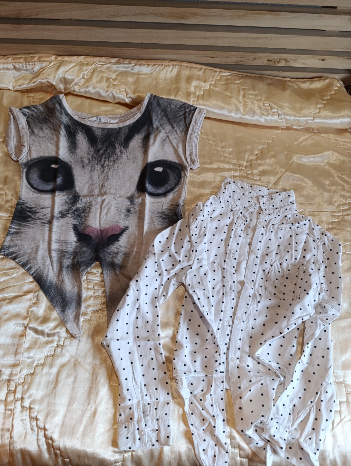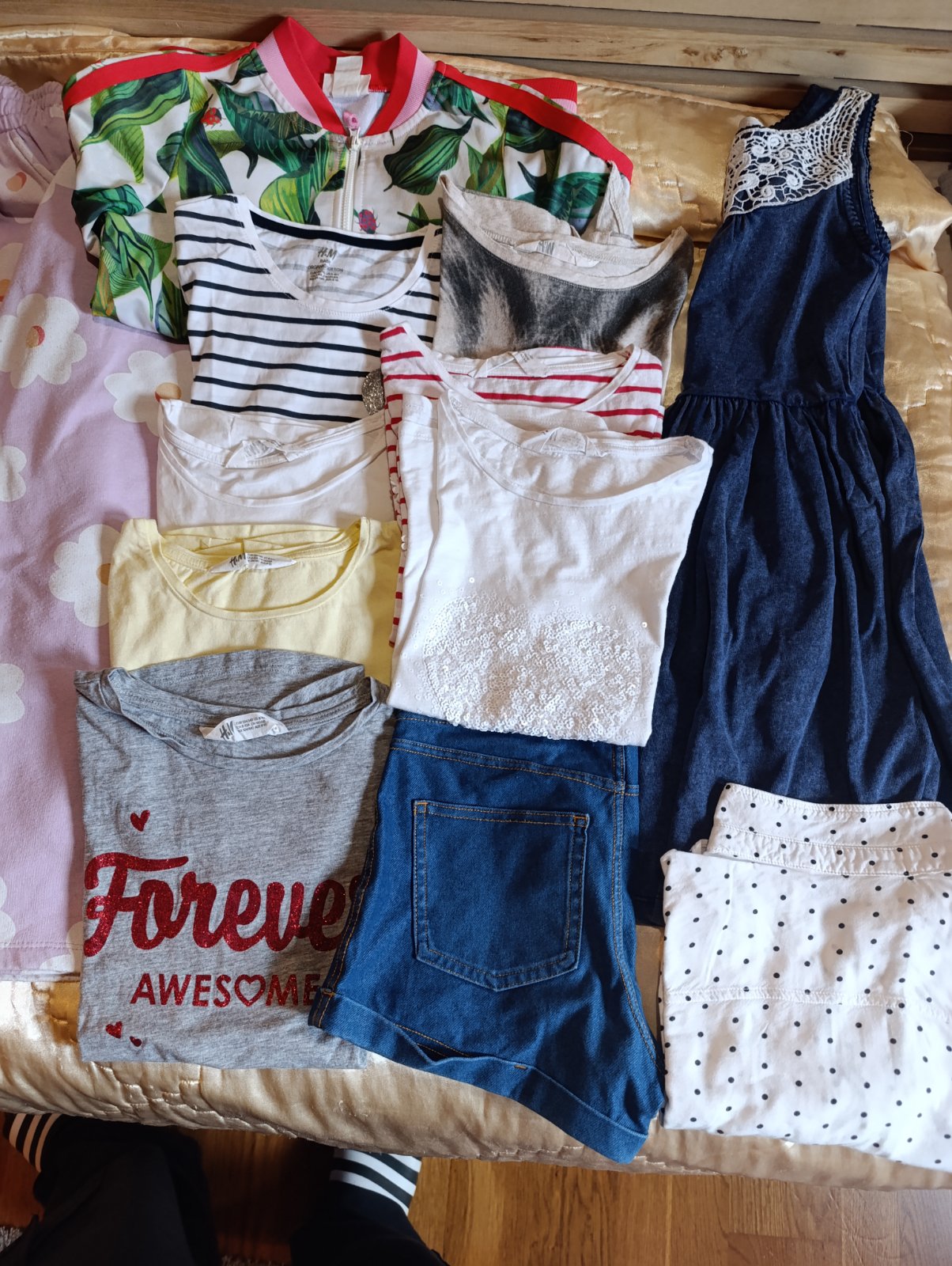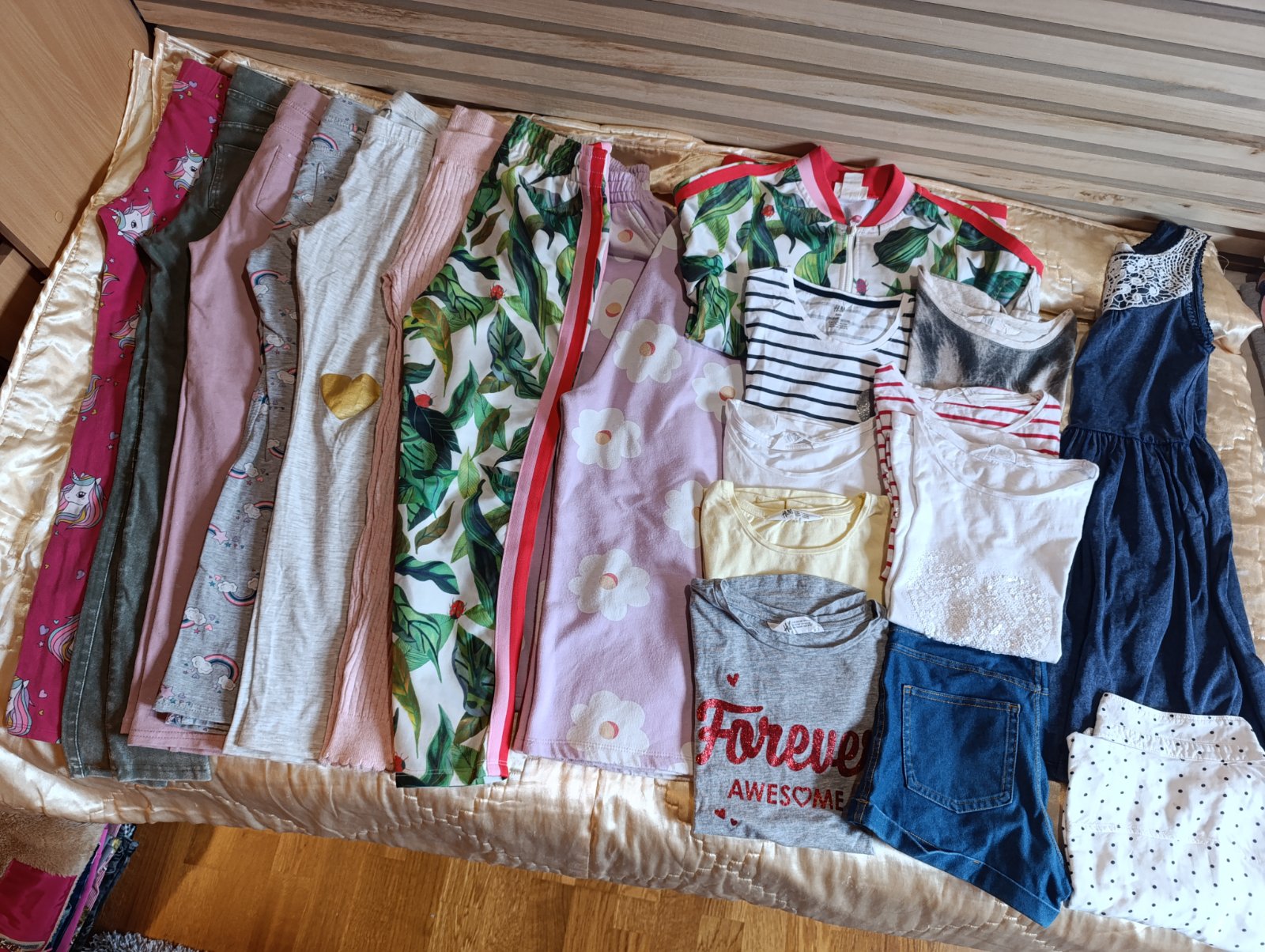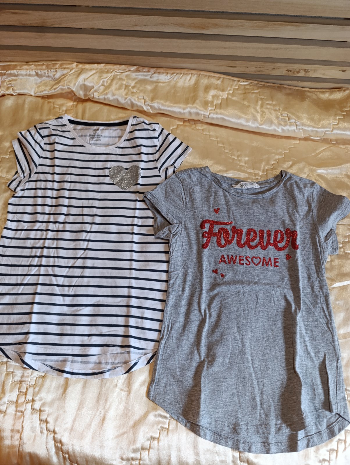 Mikinka 122, celková dĺžka 47cm vpredu , 50cm Rukáv 38cm Vpredu 2male fliciky od farby ( nie je to moc vidno) Tricko 122/128 , Celková dĺžka 44cm, Rukáv 44cm Na1 tukave na patente flak od farby