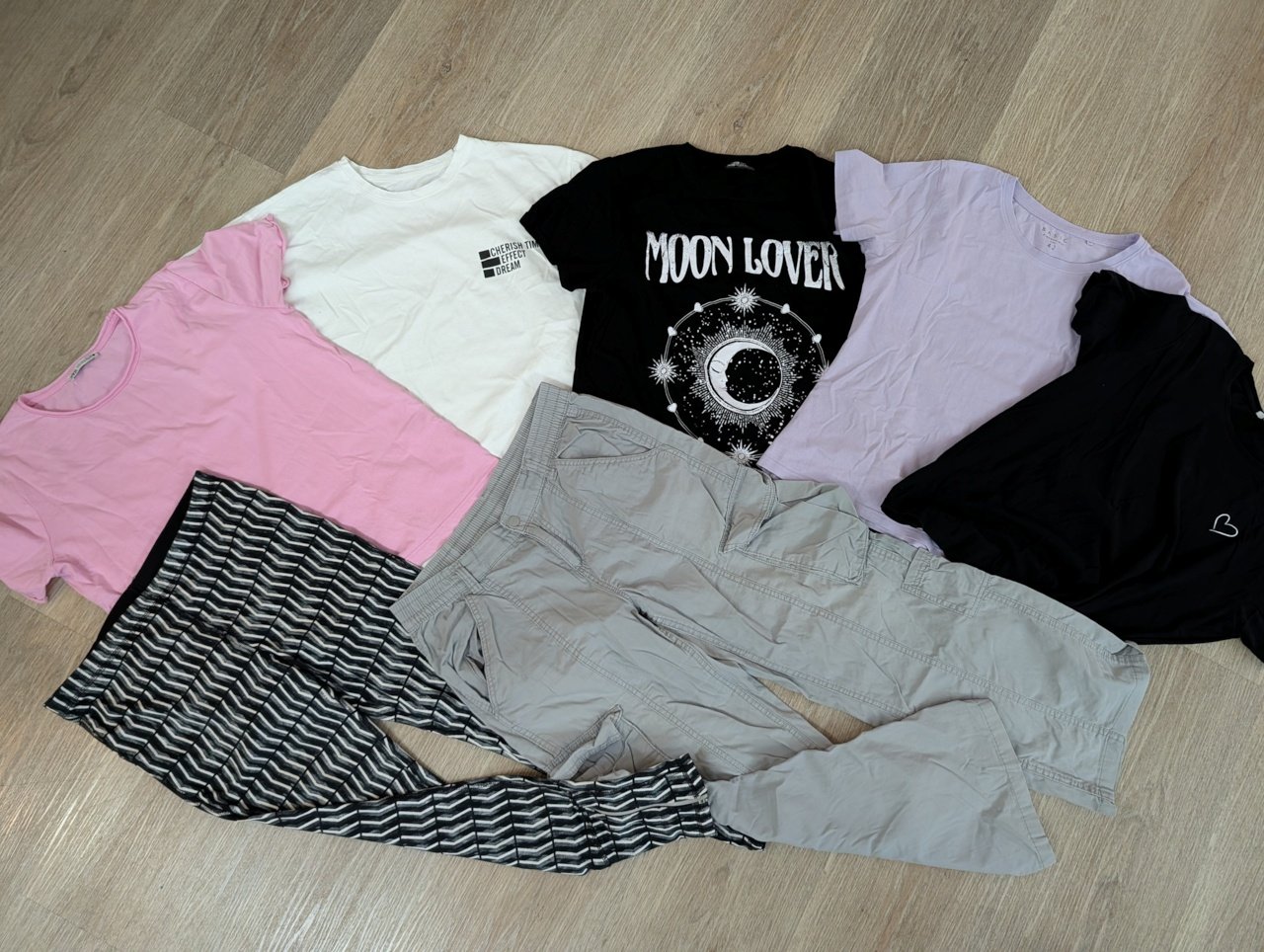 Predám balík oblečenia, veľ. L, balík obsahuje 5x tričko s krátkym rukávom, 1x široké nohavice a 1x zateplené legíny s reflexným pásikom a zipsom naspodu. Veci nie sú poškodené. Cena je za celý balík spolu, bez poštovného.