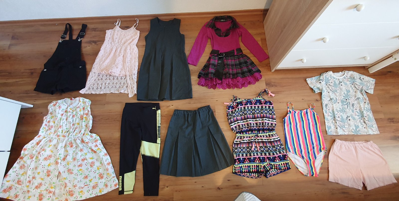 Predám balík oblečenia veľkostne 134/140 /146,len spolu balík je vhodný na donosenie nie do školy skôr na dvor, 1x sveter predĺžený, 6x tričká s krátkym rukávom , 1x legíny , 1x mikina,cena za všet...