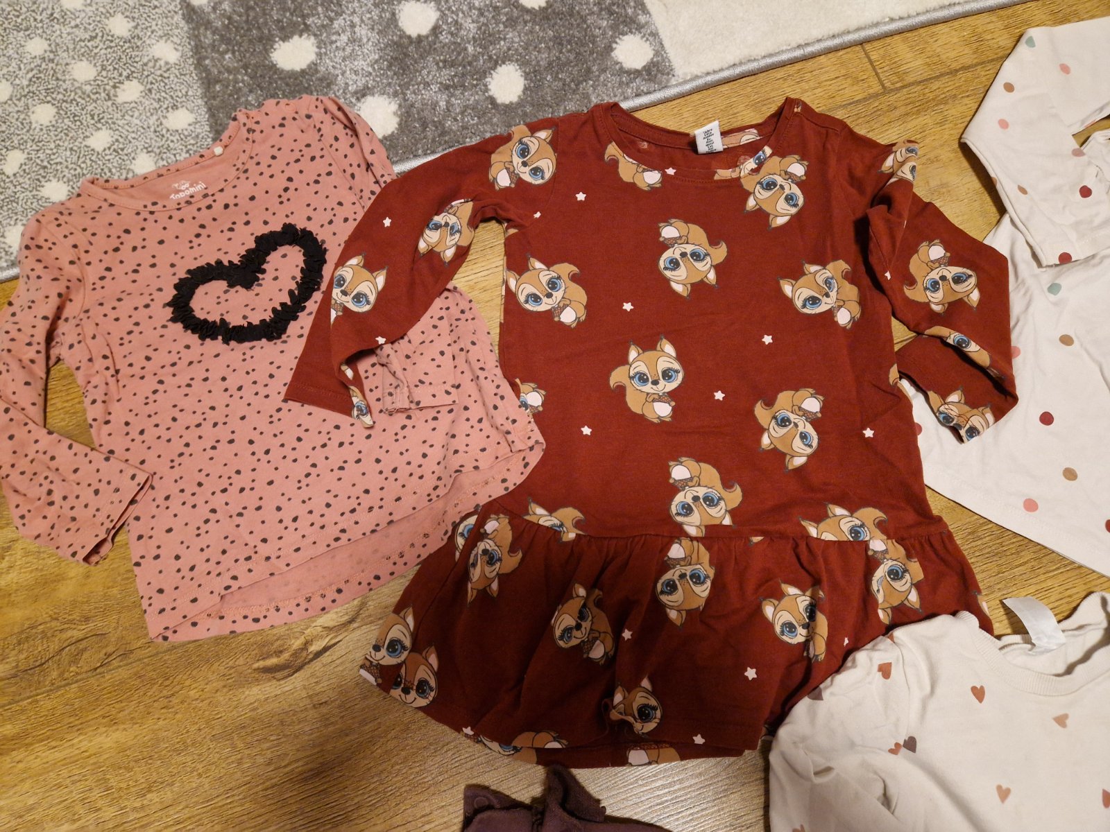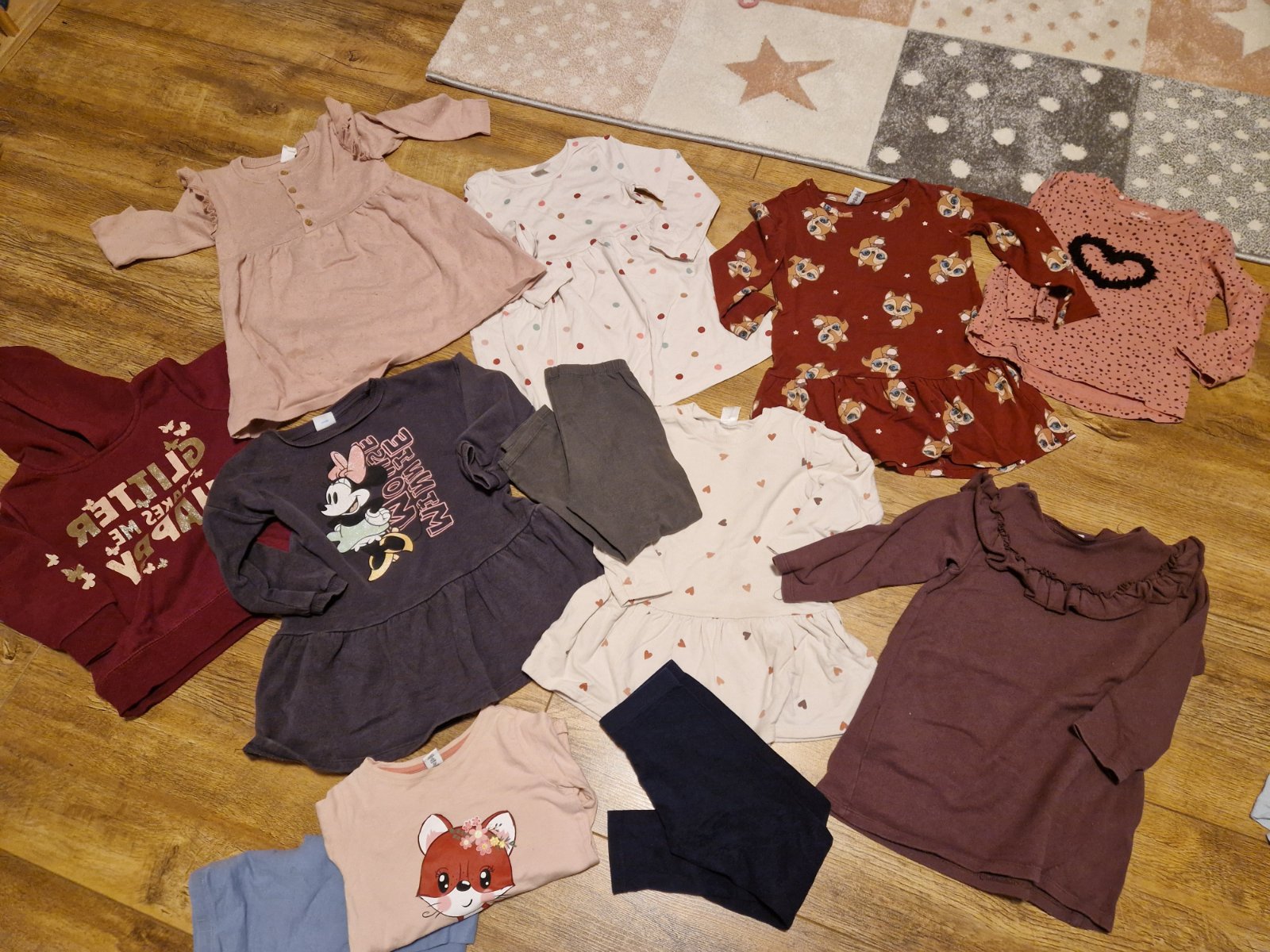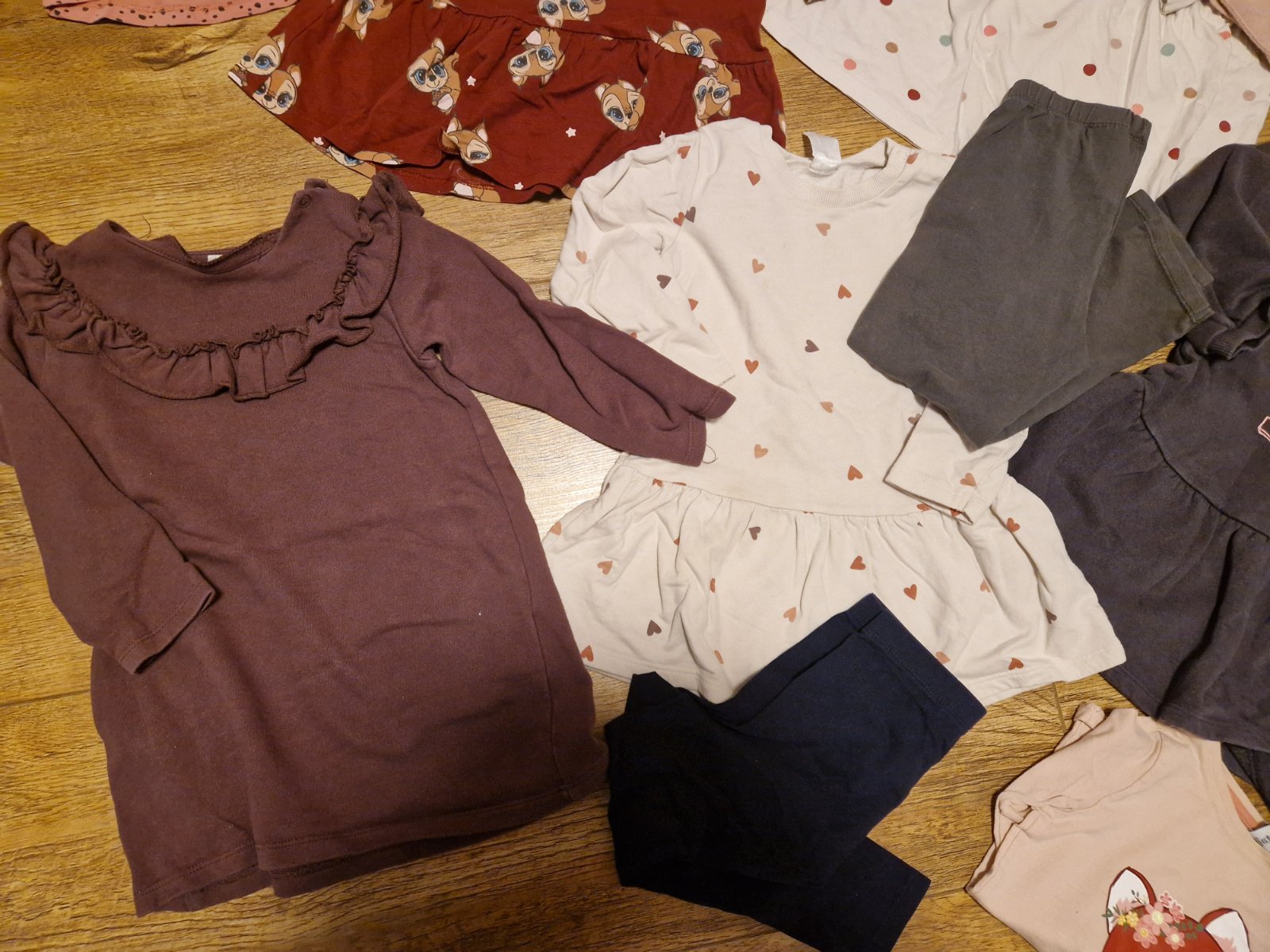 Ponúkam na predaj mix vecičiek je tam zimný komplet softselove nohavice rifle legíny teplákoch šaty vianočné šaty pre dievčatko v prípade záujmu doložím pančuchy legíny a trička do krabice značky l...
