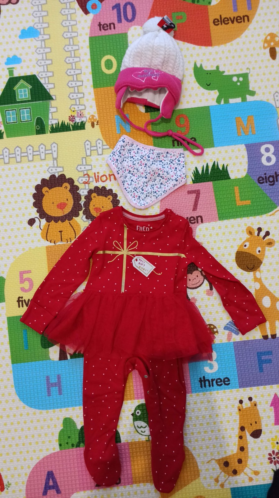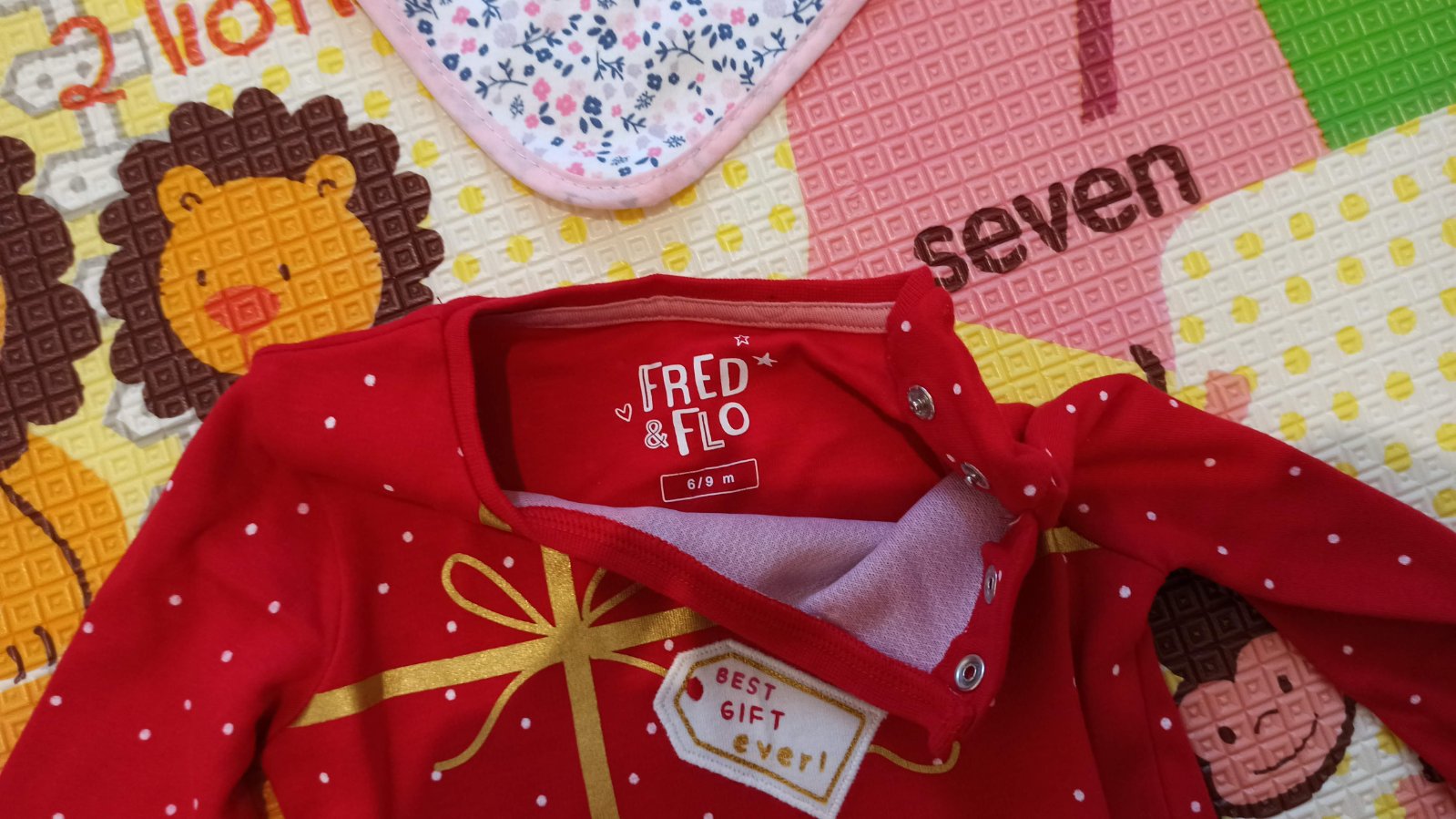Vianočný overal Fred & Flo, veľkosť 6 - 9 mesiacov, 7 eur.