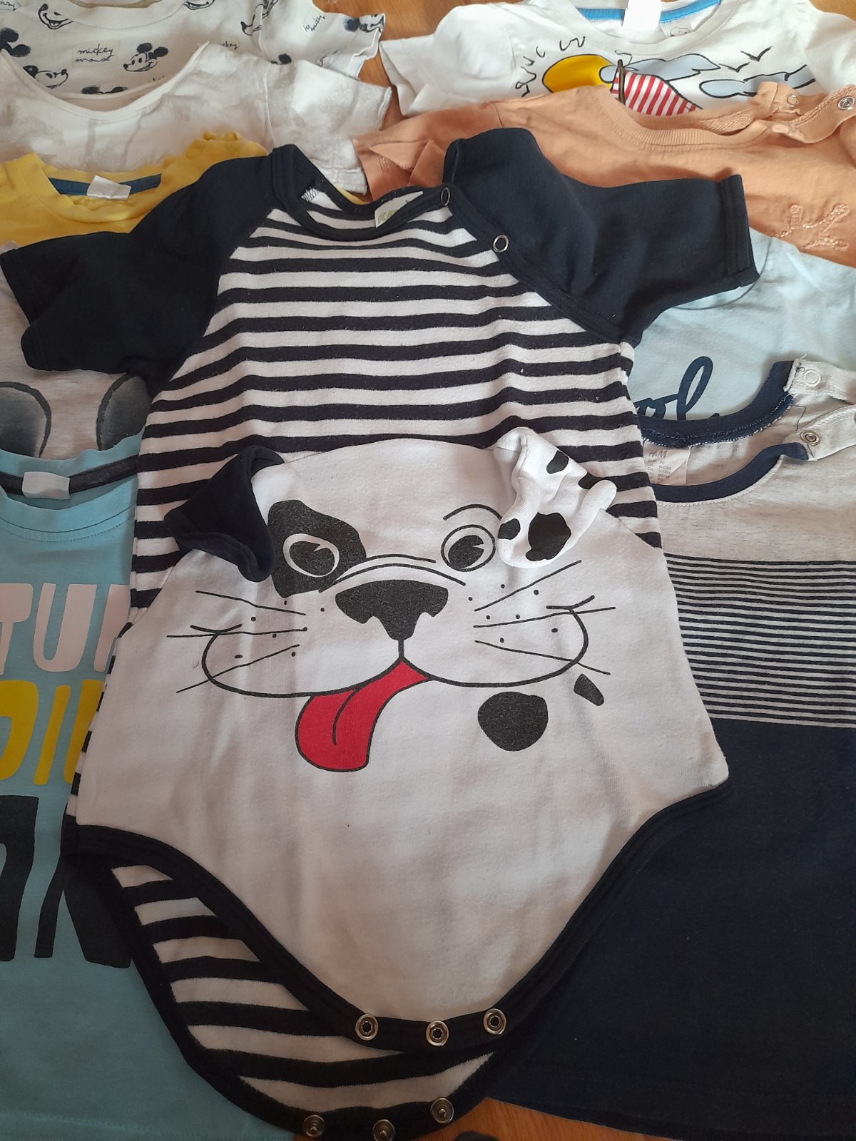 Cena spolu.Bodynka vhodne na papanie alebo na dvor, maju nevypratelne flaky. 2ks dlhy rukav a mickey kratky rukav bez flakov. Veľkosť 92
