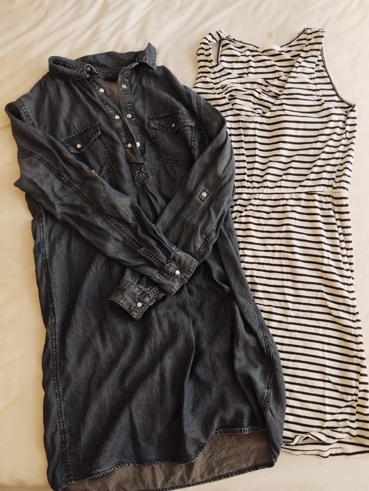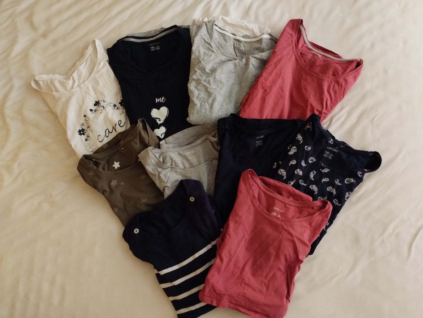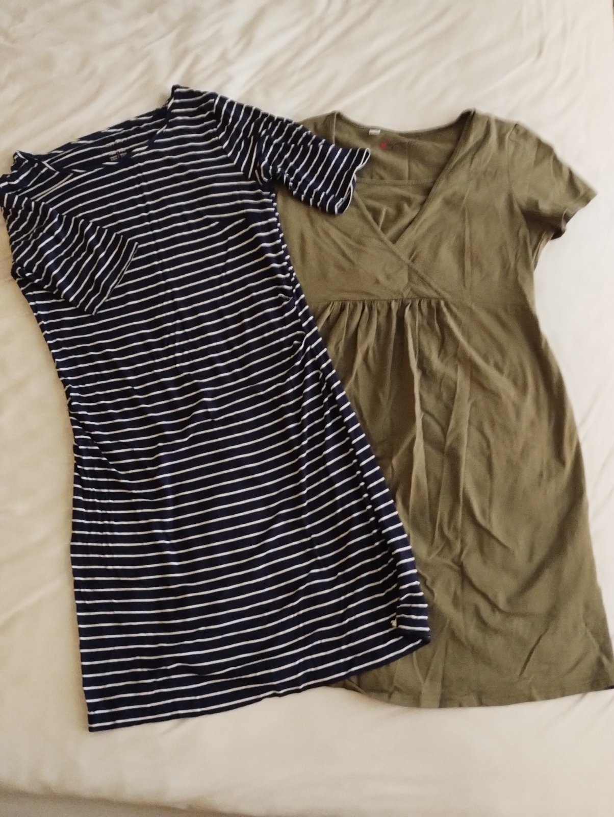 Predám balík tehotenského oblečenia, veľkosť S/M - tričká s kr. rukávom, 3/4 rukávom, svetrík, legíny, nohavice a šaty. Viaceré sa dajú nosiť aj po pôrode, na dojčenie alebo len tak :).
