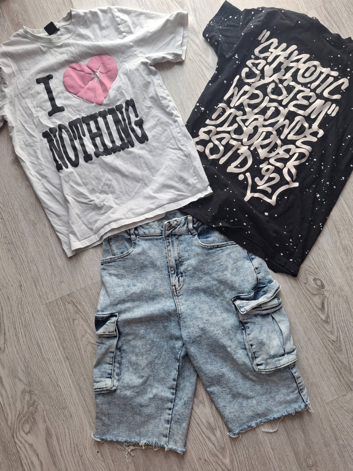 Balík obsahuje 5 tričiek( tričko s vysačkou)a mikinu.Veci sú oblečené max 2x-3x.