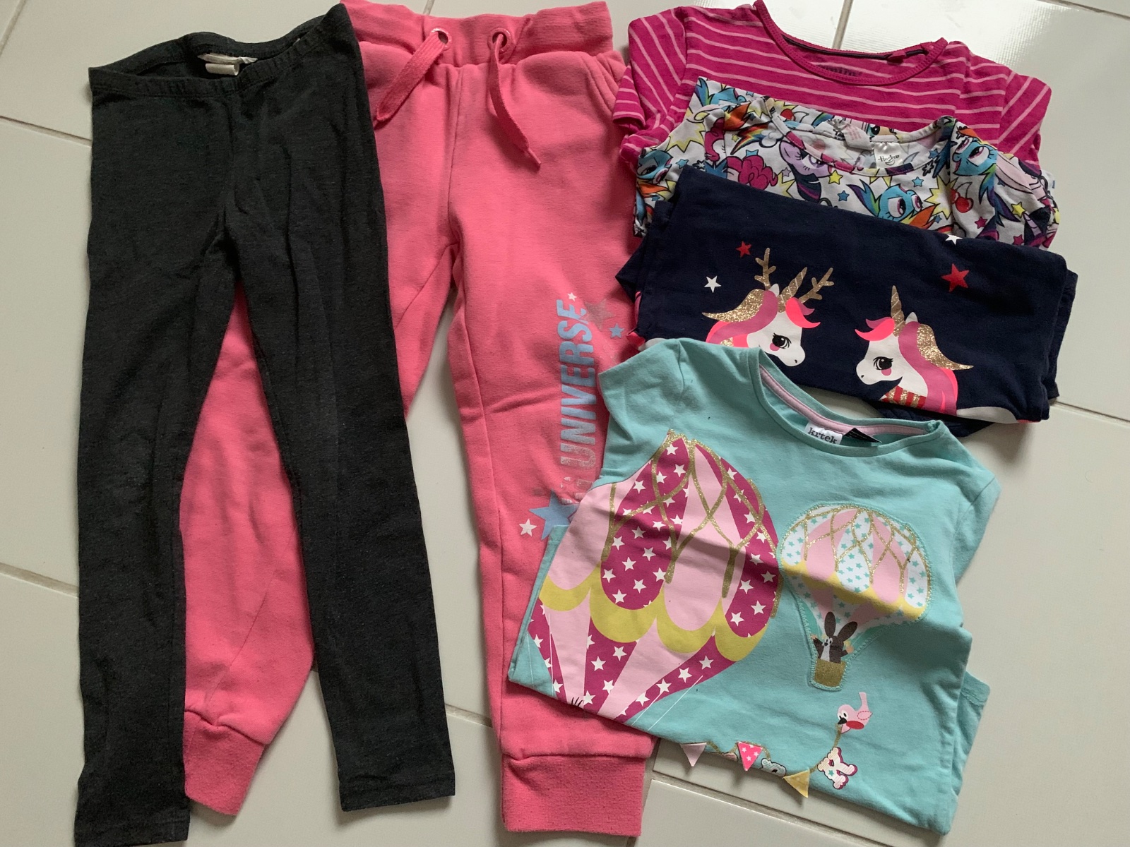 Teplaky hrubsie, tenke leginy a 4ks tricka s dlhym rukavom.
