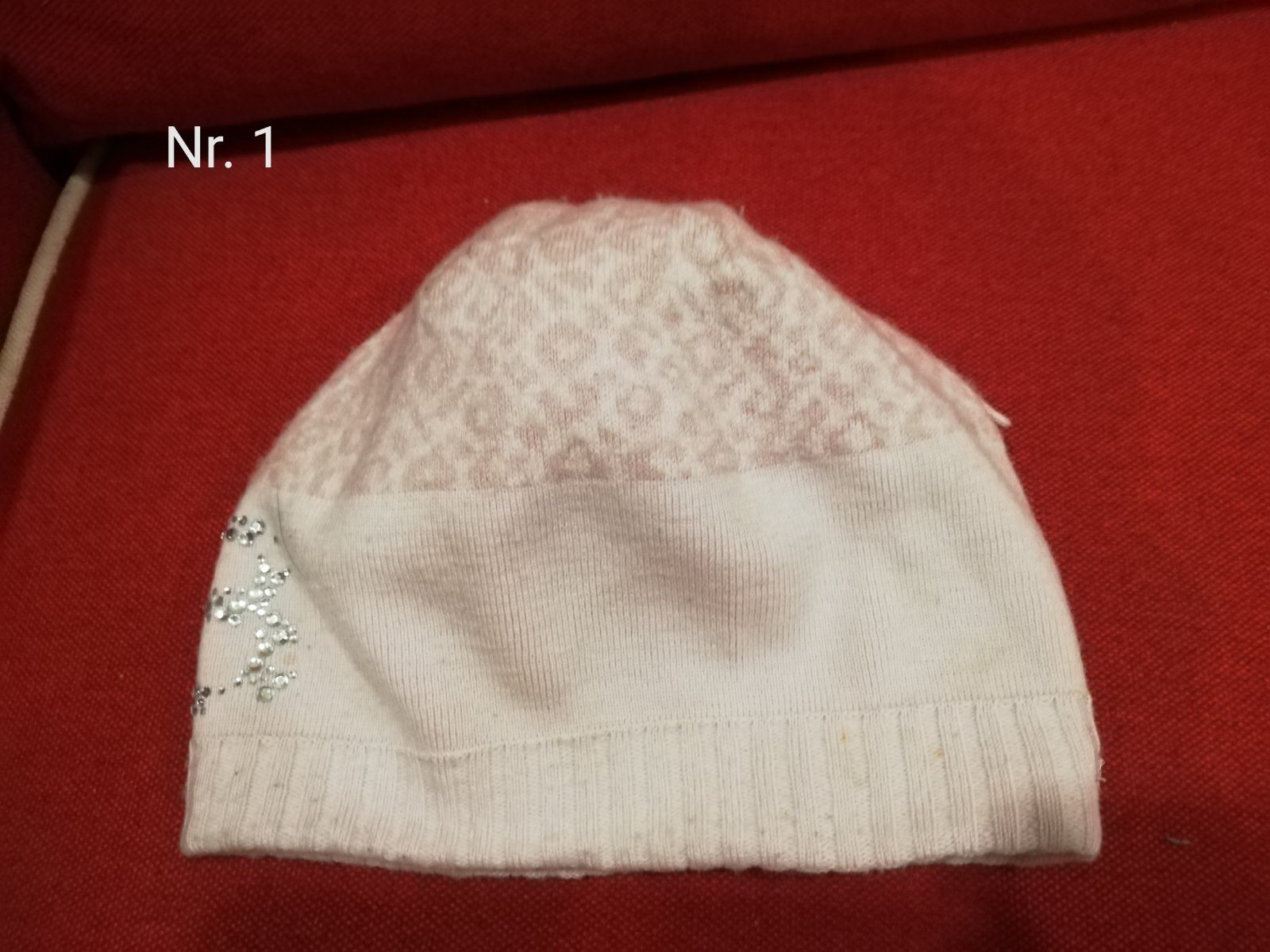 Nr.7 veľkosť univerzálna, pekne sa prispôsobí hlave dieťaťa, nie je podšitá, cena 2,50€