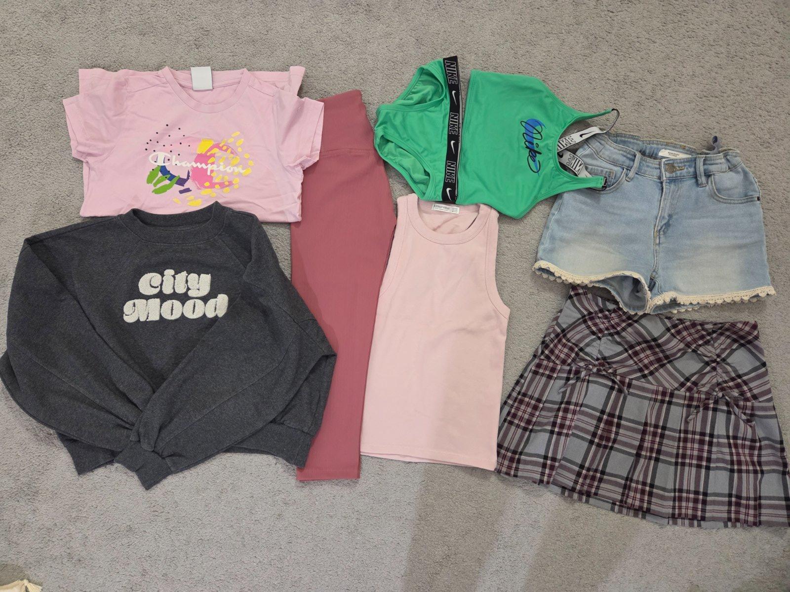 Predám balík oblečenia veľkostne 134/140 /146,len spolu balík je vhodný na donosenie nie do školy skôr na dvor, 1x sveter predĺžený, 6x tričká s krátkym rukávom , 1x legíny , 1x mikina,cena za všet...