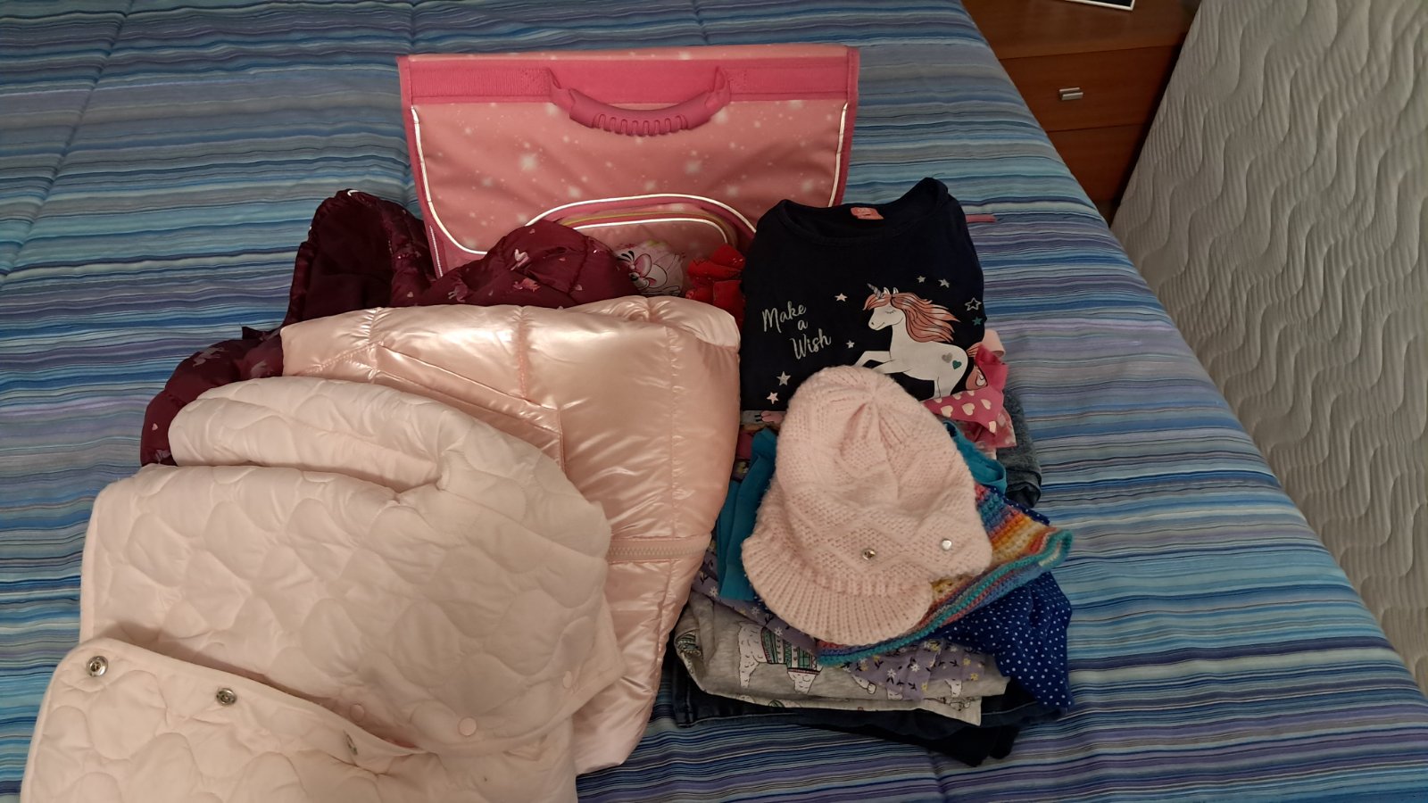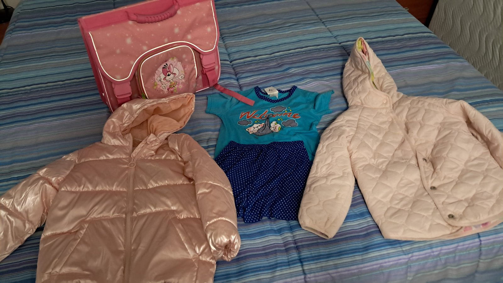 Dievčenský balík oblečenia 104-122 s aktovkou