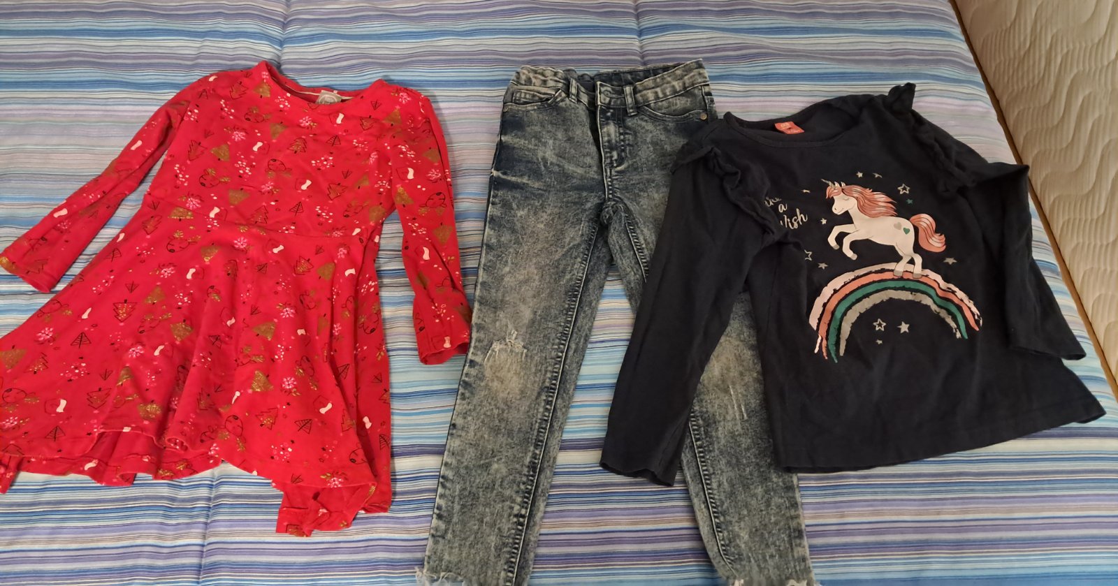 Predám balík oblečenia 104-122 pre dievčatko aj so školskou aktovkou ako novou iba za 25 eur. Všetko je v dobrom používanom stave. Osobný odber je v Dolnej Mičinej, v Banskej Bystrici alebo poprípade vo Zvolene.