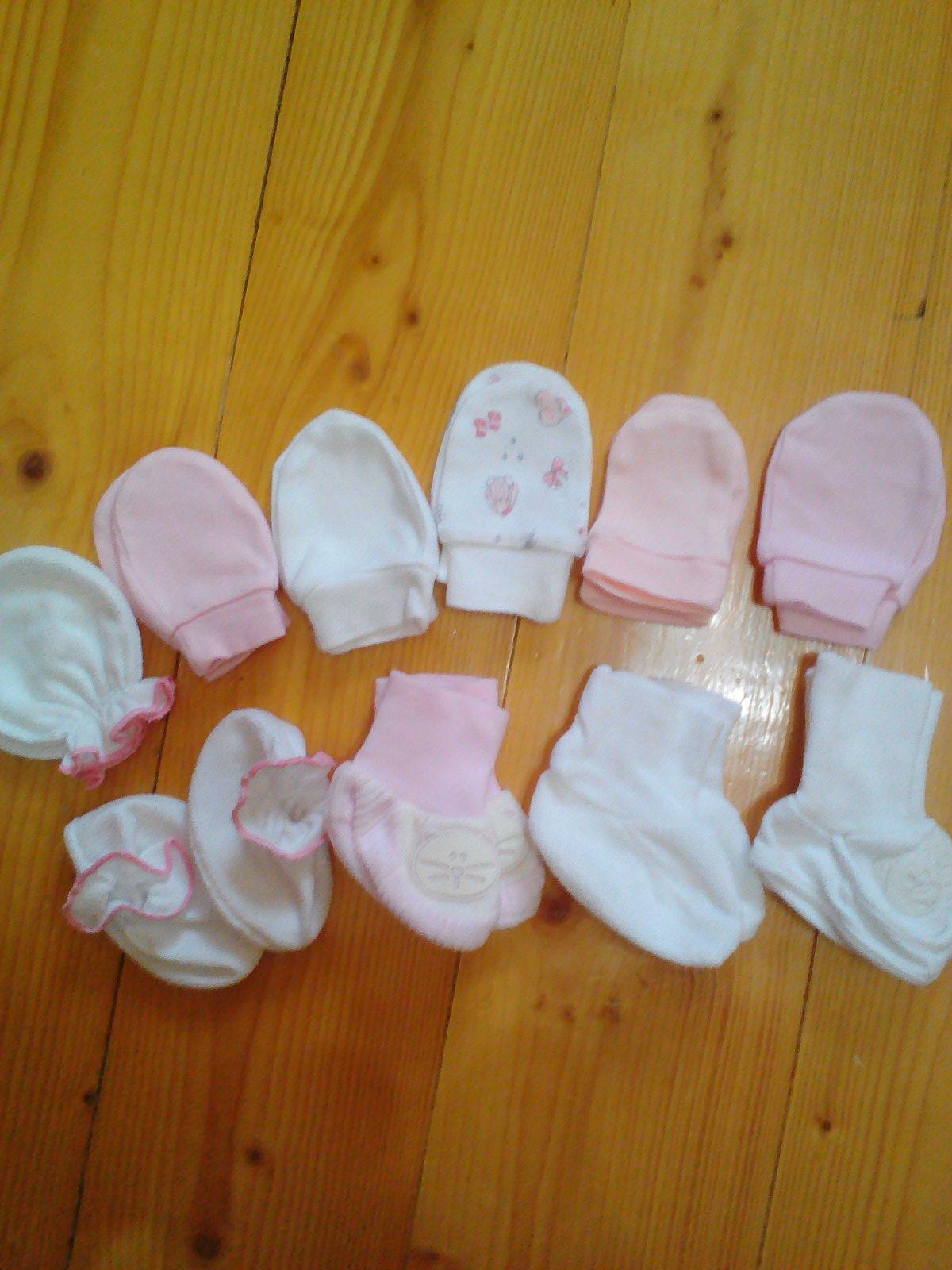 pre novorodeniatka rukavicky a ponozticky velmi malo pouzivane niektore ani nepouzivane velmi pekne cena za kus 0,50 rukavicky a ponozticky 1,00 vsetko spolu7,00 eur