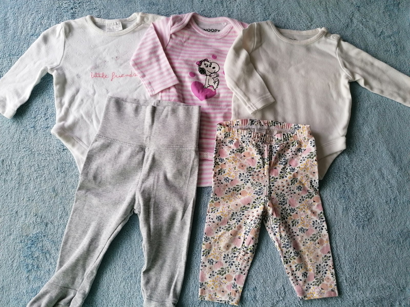 Predám krásne vecičky veľkosť 62 - 2body Carter's, a tá mikina Lindex. Veci sú v krásnom stave, ako nové, žiadne poškodenia ani žmolky. 3ks body a 3ks legín, tepláky PREDANÉ viď foto.
