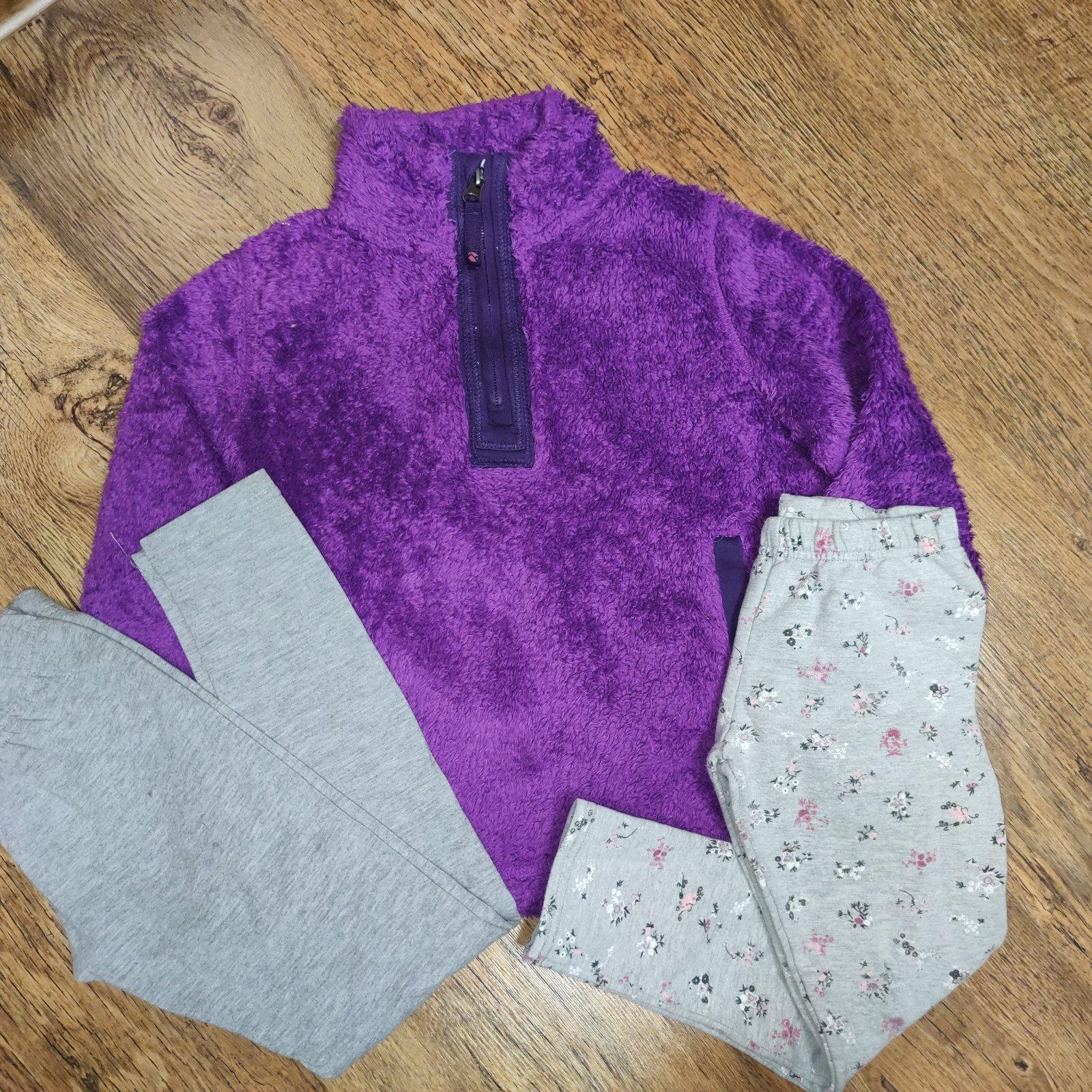 Teplucka mikina na pol zips, prechodné leginky s kvetinkami a tenké leginky.cena aj s poštovným